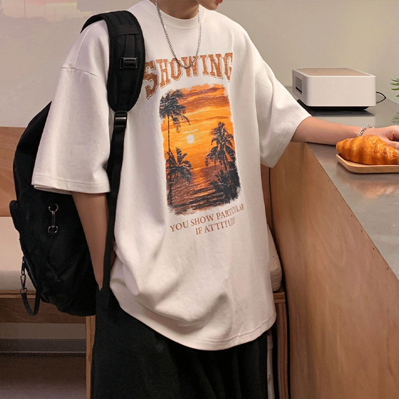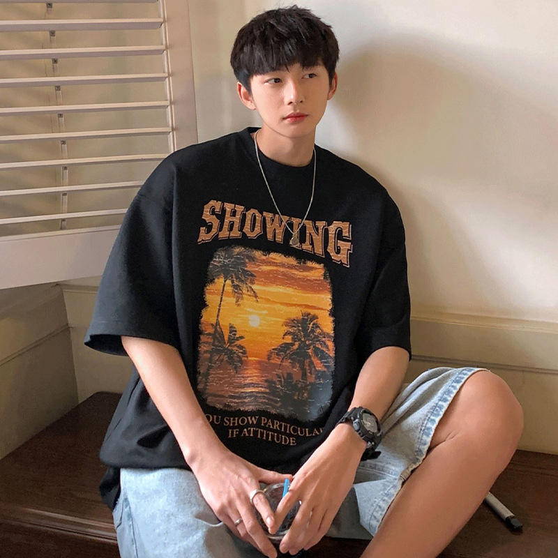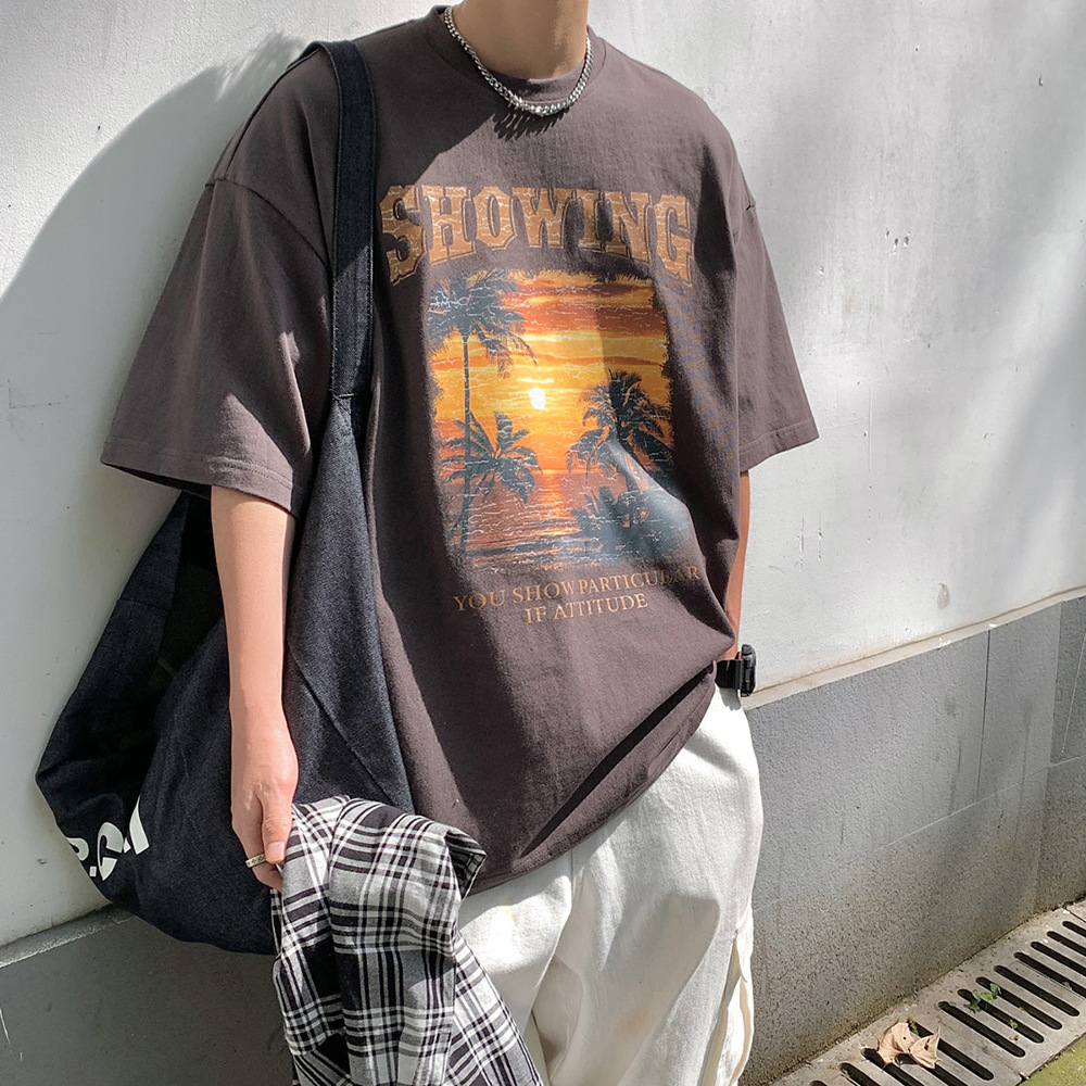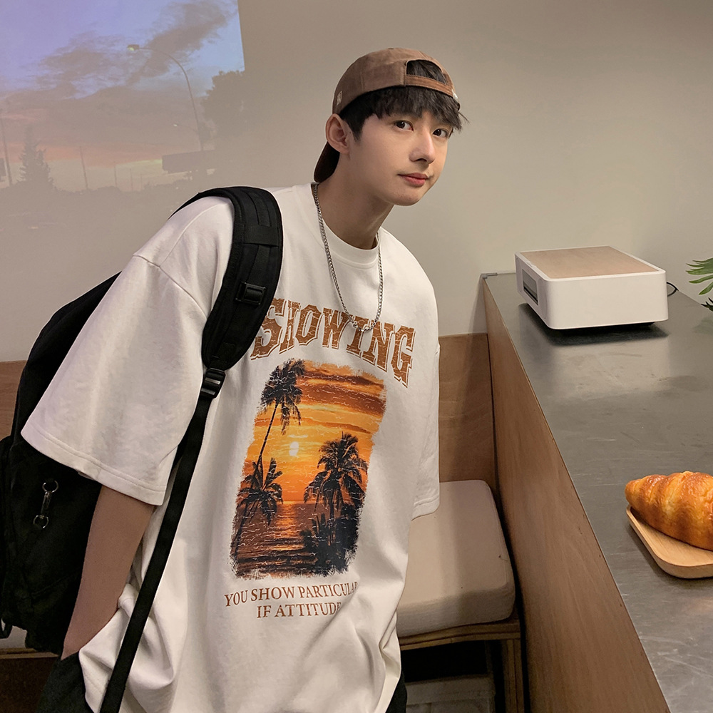 아메리칸 스타일 레트로 무거운 면 반팔 티셔츠 남자의 여름 유행 브랜드 느슨한 플러스 사이즈 하이 스트리트 푹신한 잘 생긴 반팔 티셔츠스토어 가기