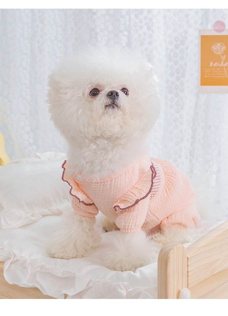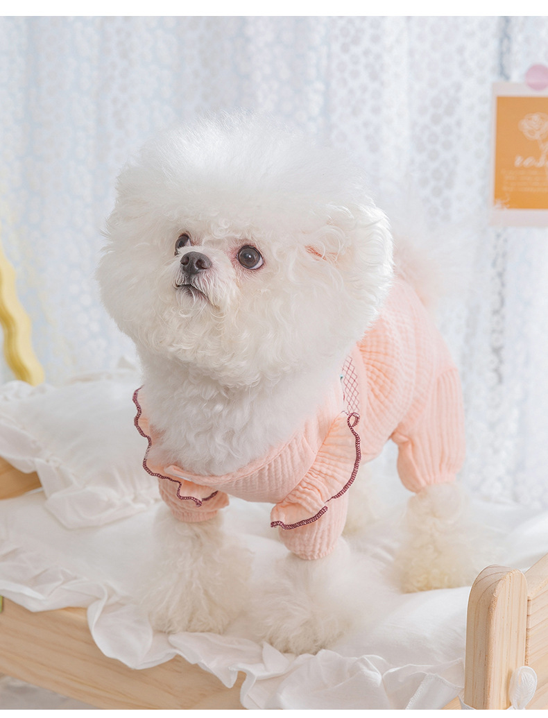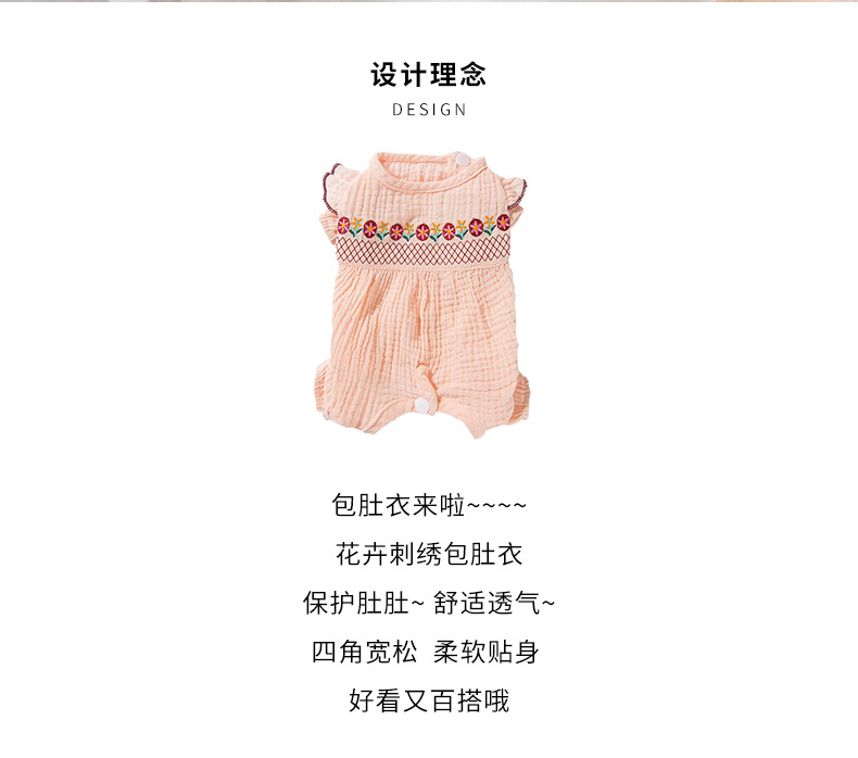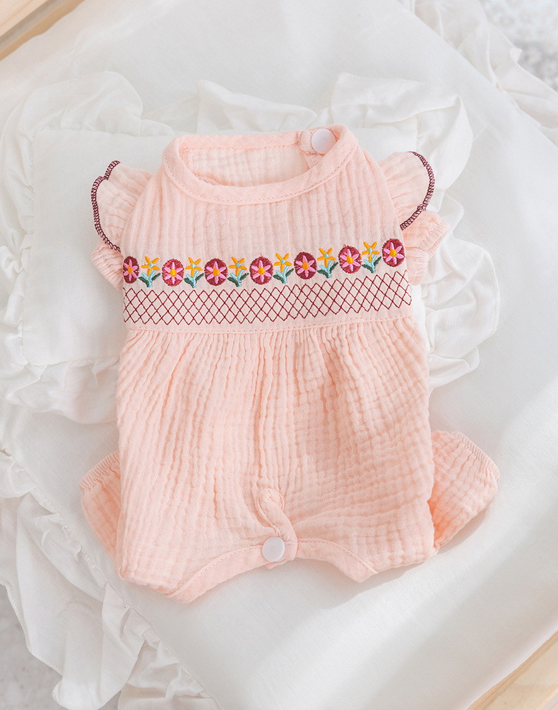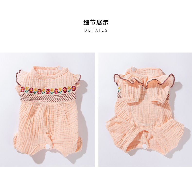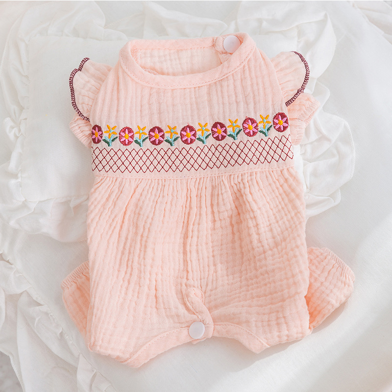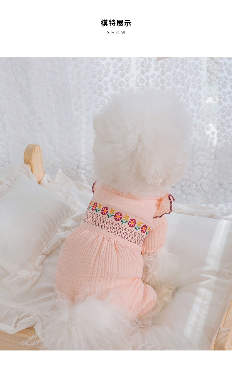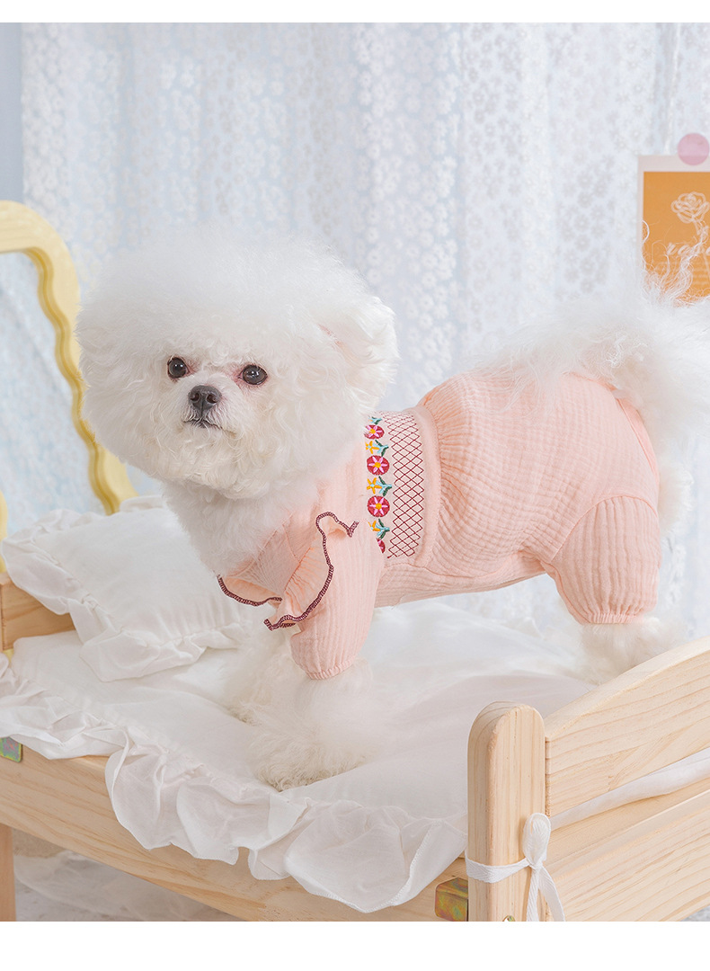 봄과 여름 개 옷 꽃 자수 가방 배꼽 옷 네 다리가있는 옷 meow mi 집 옷 테디 베어 애완 동물 의류