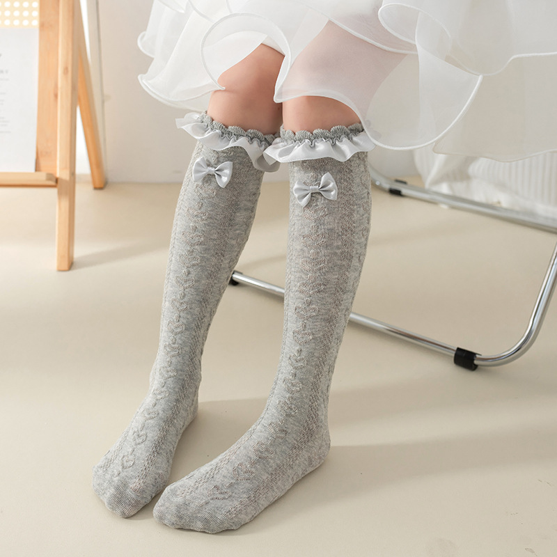 2023 여름 새로운 얇은 필링 방지 사랑 메쉬 활 레이스 어린이 튜브 양말 스트레이트 플레이트 소녀