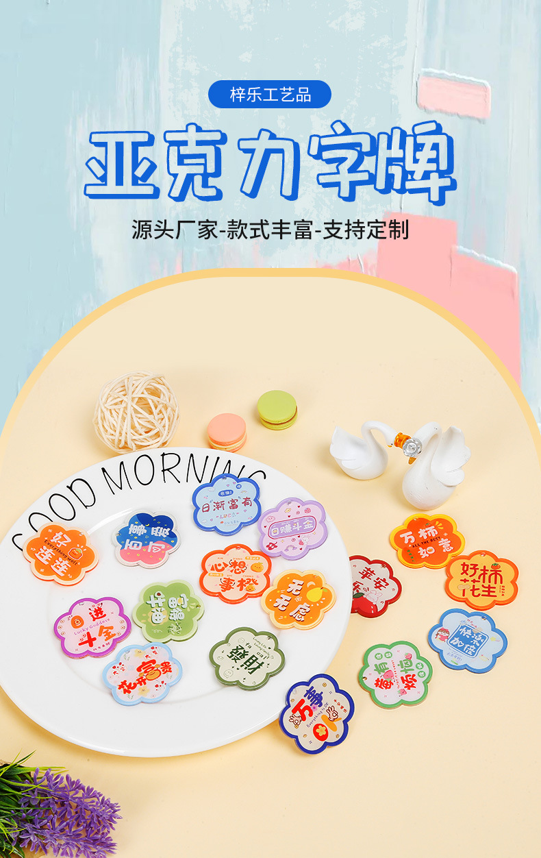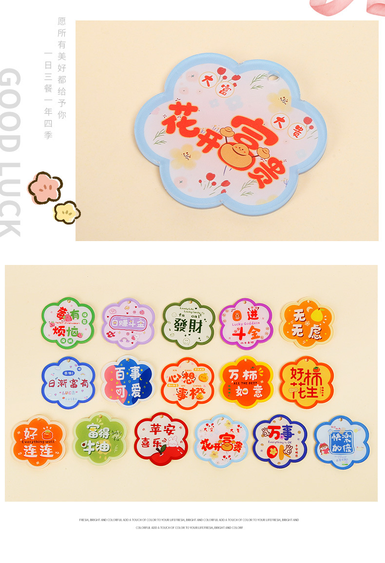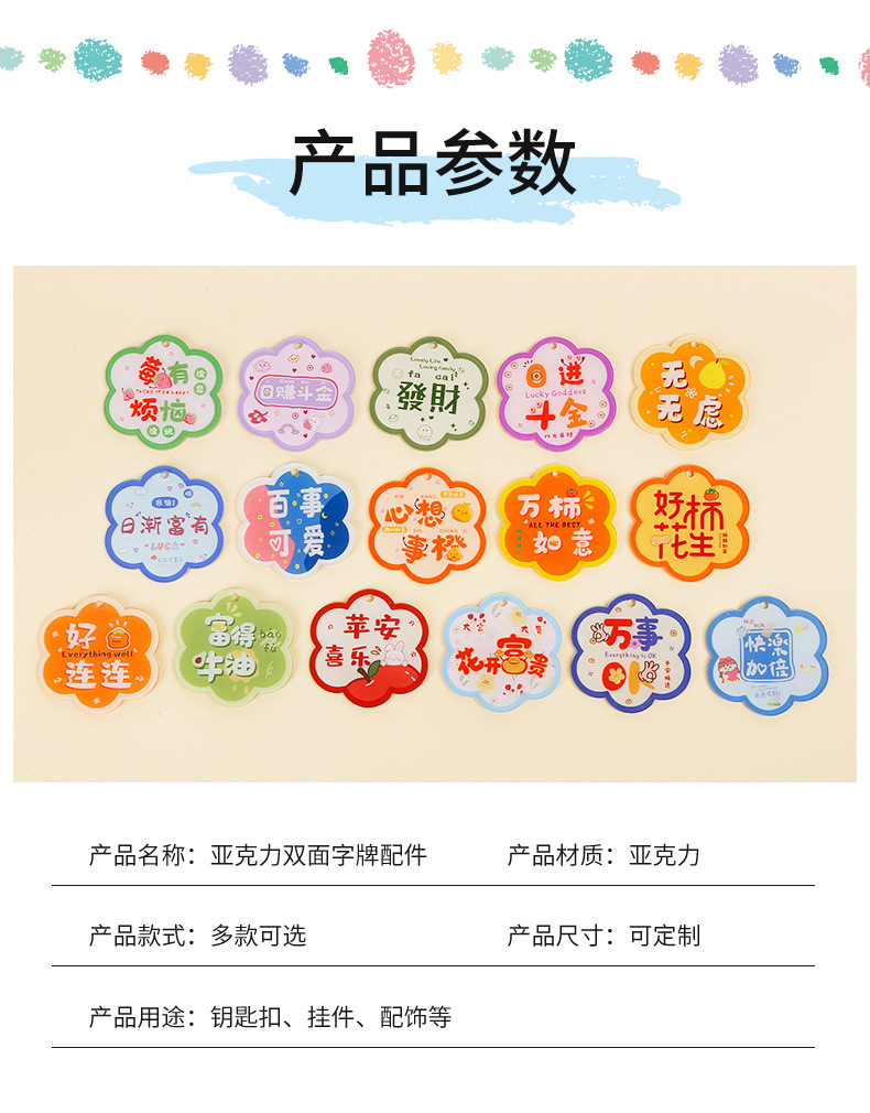 양면 수제 DIY 액세서리 좋은 감 펜던트 아크릴 꽃 텍스트 카드 동기 부여 텍스트 키 체인
