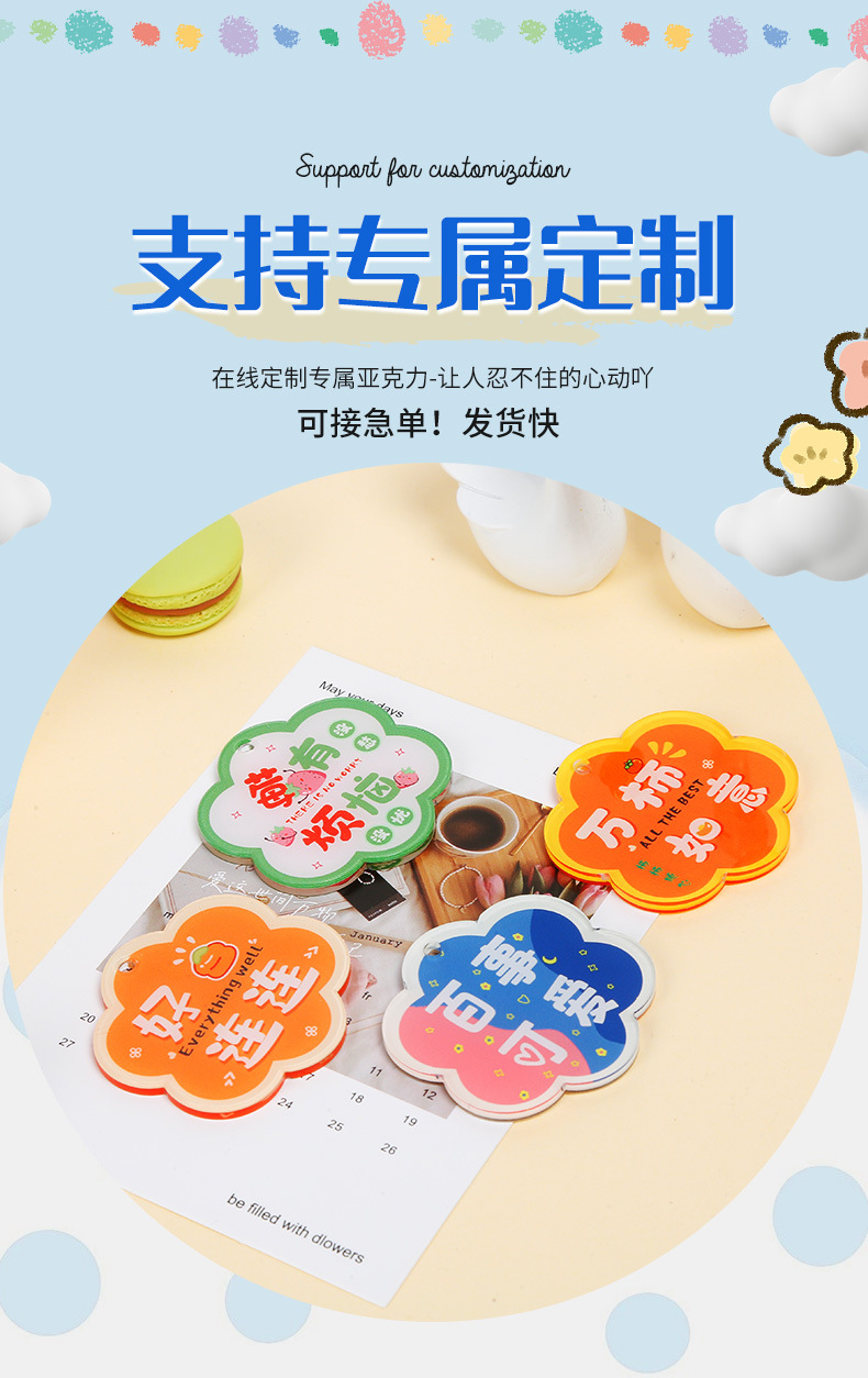 양면 수제 DIY 액세서리 좋은 감 펜던트 아크릴 꽃 텍스트 카드 동기 부여 텍스트 키 체인스토어 가기