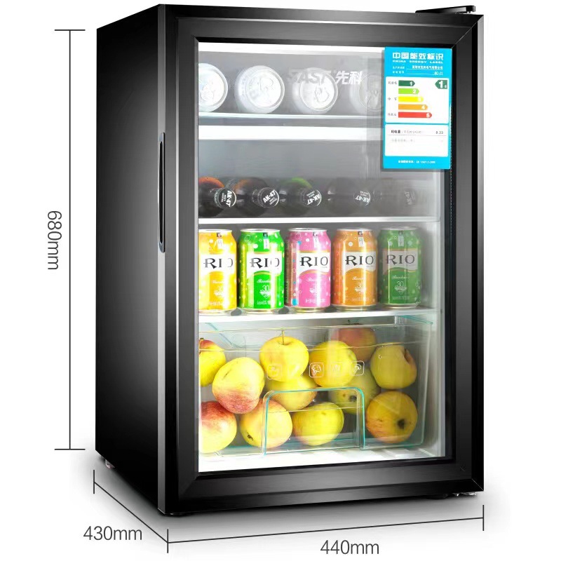 Xianke 아이스 바 65L 가정용 미니 냉장고 단일 도어 유리 미니 냉동고 적포도주 냉동 일정한 온도 호텔 신선한 보관 캐비닛스토어 가기