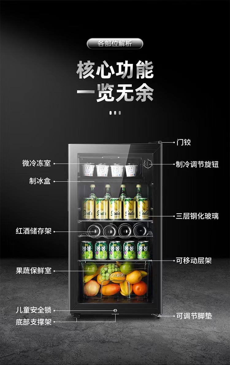 Xianke 아이스 바 65L 가정용 미니 냉장고 단일 도어 유리 미니 냉동고 적포도주 냉동 일정한 온도 호텔 신선한 보관 캐비닛