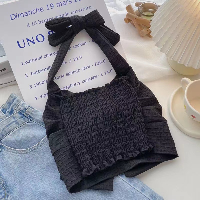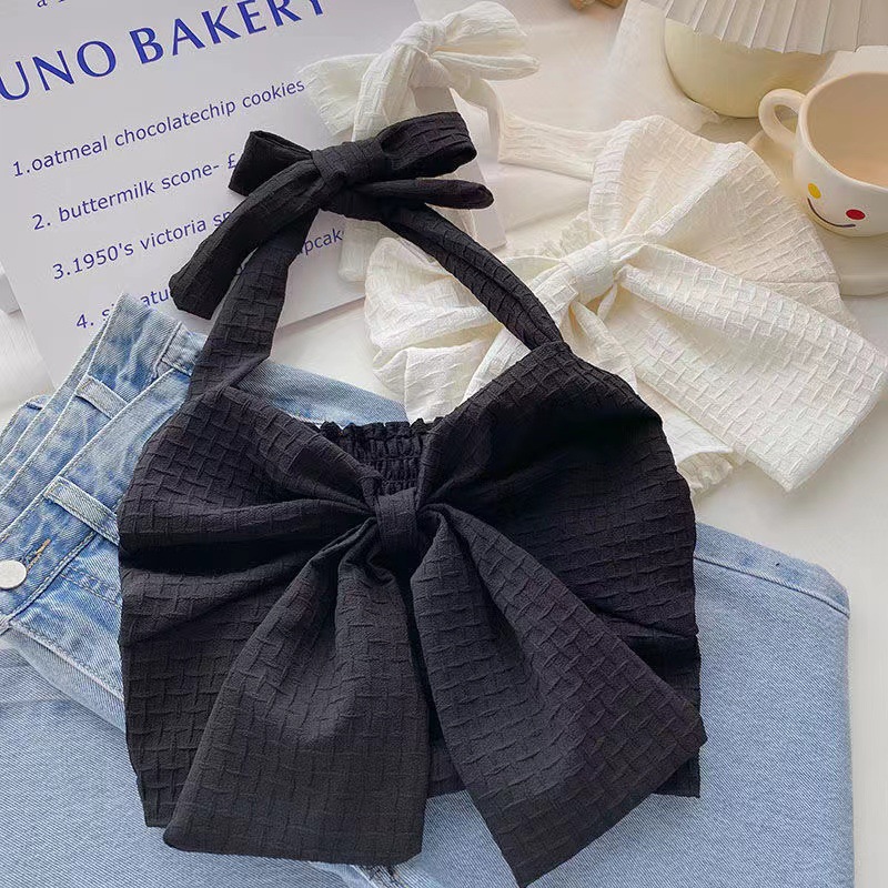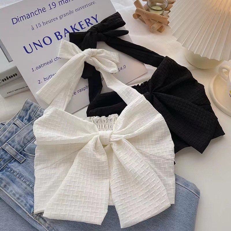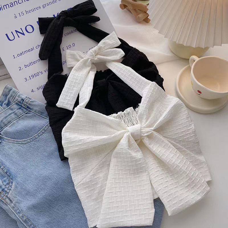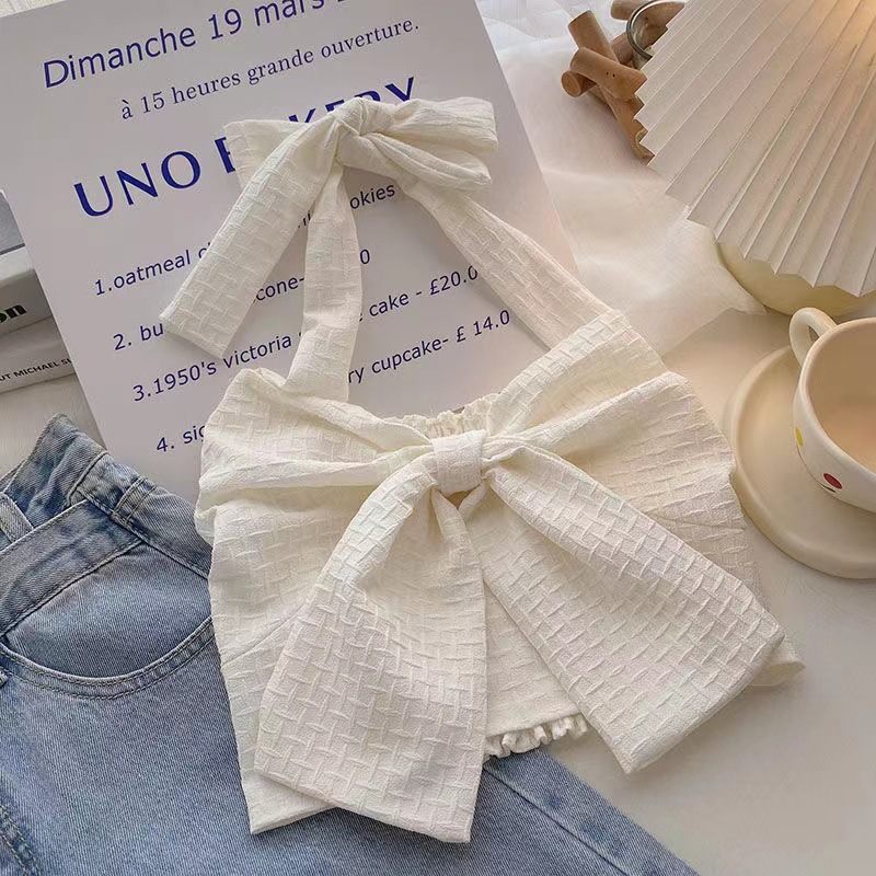 여아 여름 큰 어린이를위한 새로운 한국식 홀터 스트랩 튜브 탑 조끼 짧은 노출 허리 조끼 나비 매듭 조끼