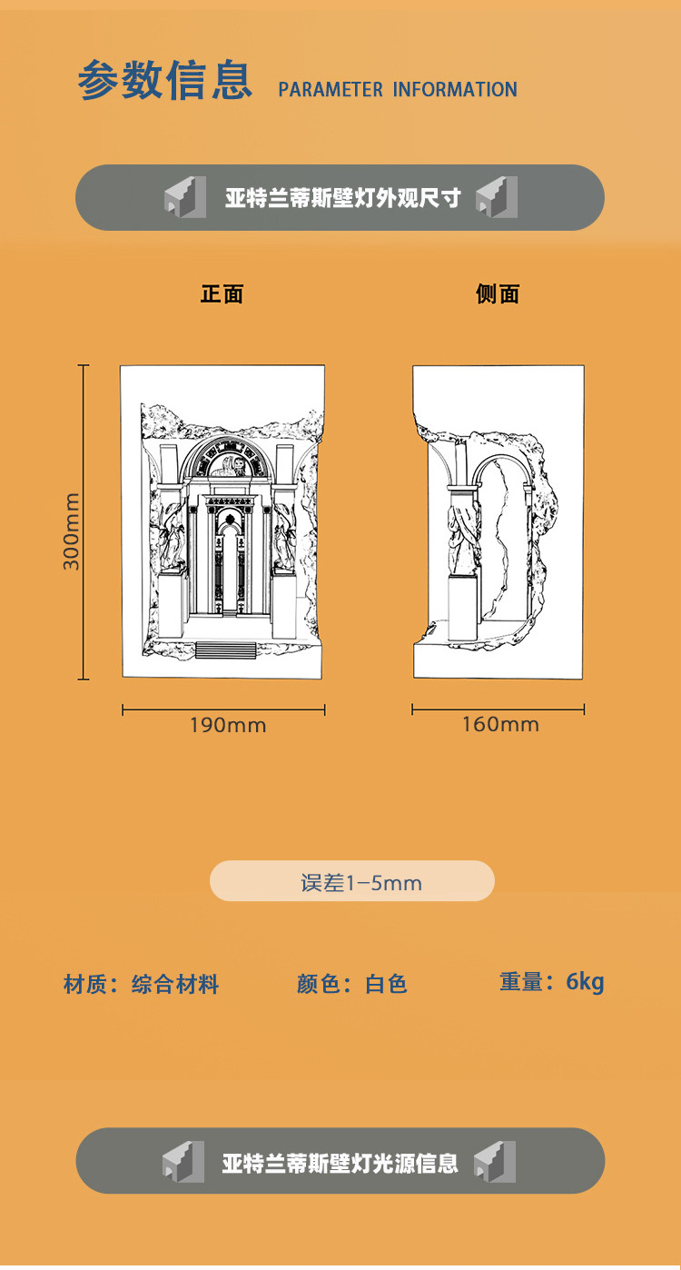 임베디드 석고 램프 아틀란티스 소유 램프 홈 침실 따뜻한 밤 조명 거실 벽 기둥 코너 벽 램프