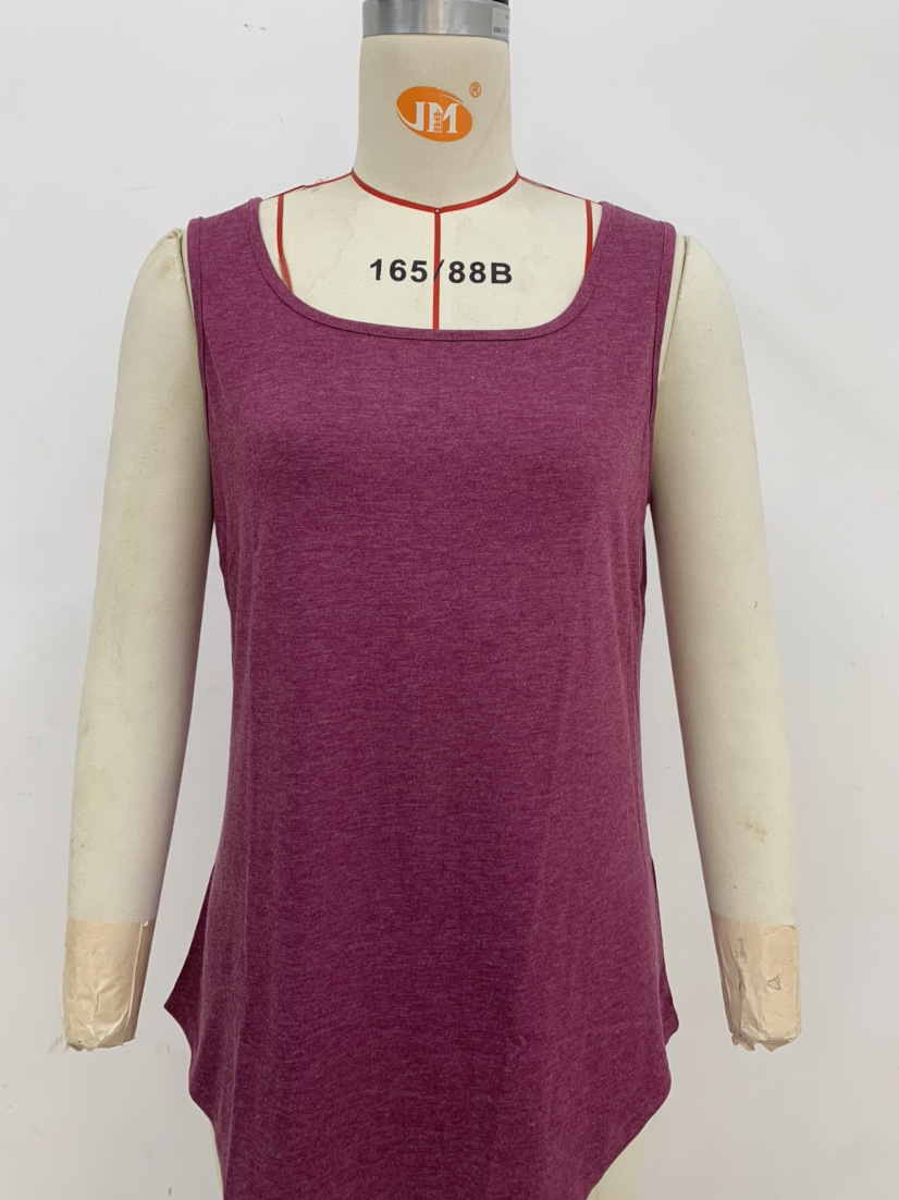 2024 아마존 새로운 소원 유럽과 미국의 폭발 여름 민소매 사각 칼라 단색 조끼 티셔츠 국경 대외 무역 여성