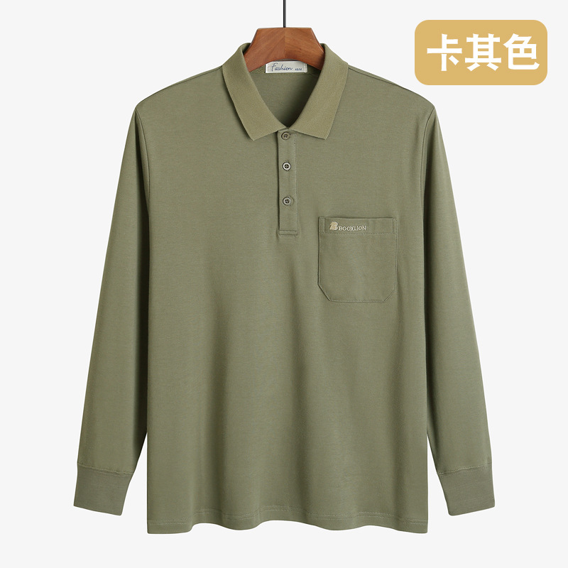 중년 및 노인 남성 상의 옷 중년 봄 가을 순면 긴팔 티셔츠 아빠의 봄 옷 할아버지의 가을 옷 베이스 셔츠