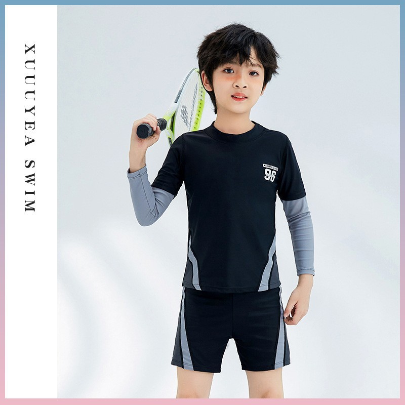 2023 여름 새로운 어린이 수영복 큰 소년과 소녀 수영 세트 청소년 원피스 반팔 수영 세트