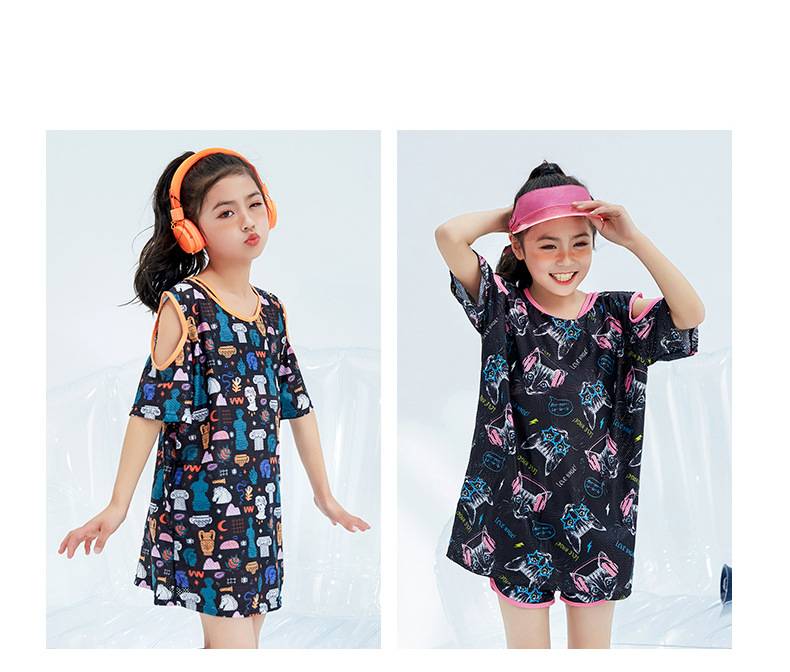 2023 여름 새로운 어린이 수영복 큰 소년과 소녀 수영 세트 청소년 원피스 반팔 수영 세트스토어 가기