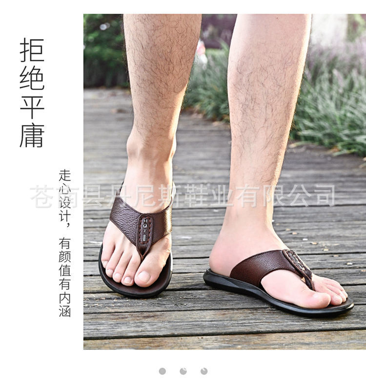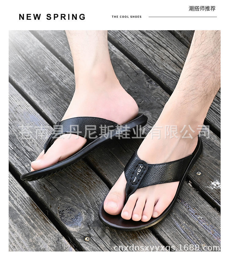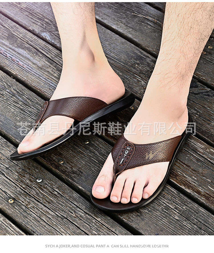 한국 스타일 플립 플롭 남성 유행 2023 새로운 여름 아웃웨어 정품 가죽 샌들 남성용 미끄럼 방지 탈취제 베트남 슬리퍼스토어 가기