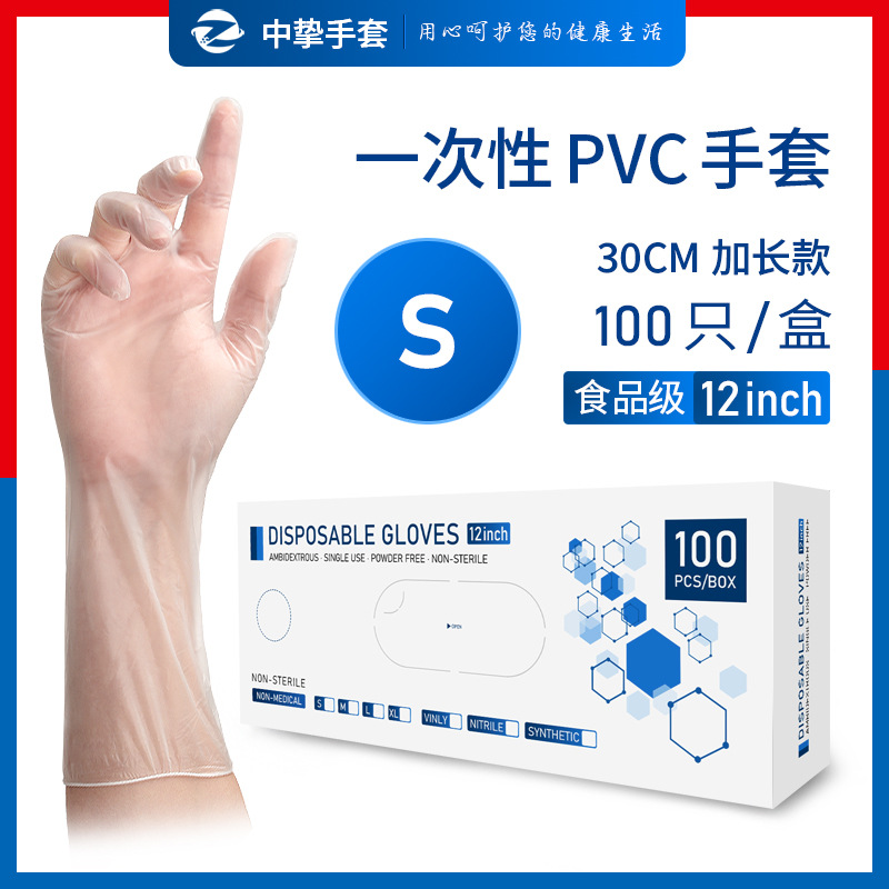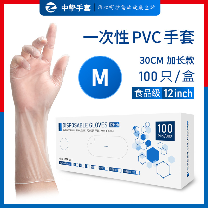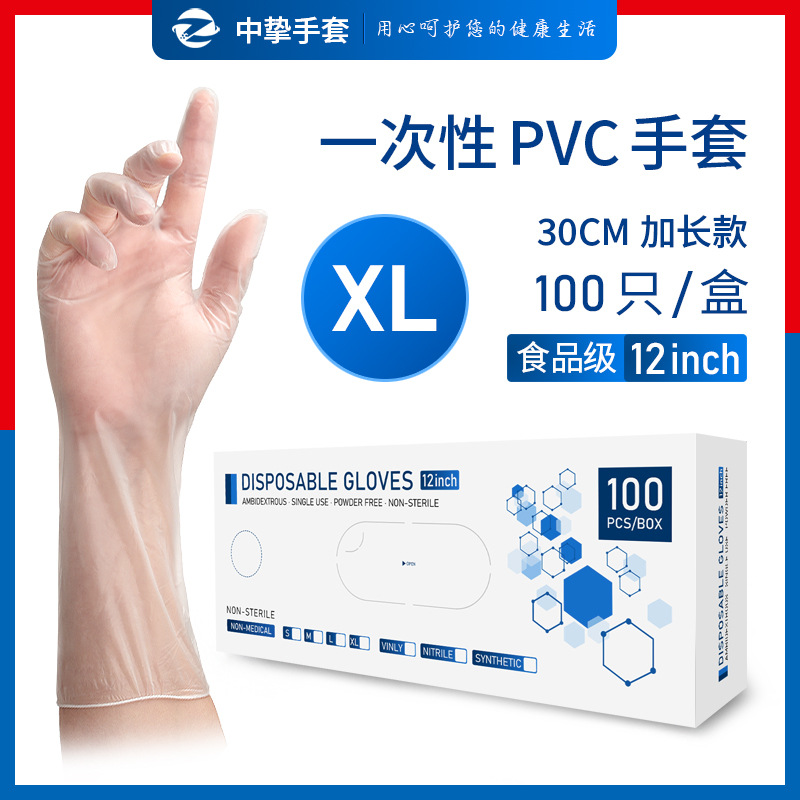 일회용 PVC 장갑 길어진 두꺼운 12 인치 식품 등급 플라스틱 가정용 주방 설거지 베이킹 미용 장갑