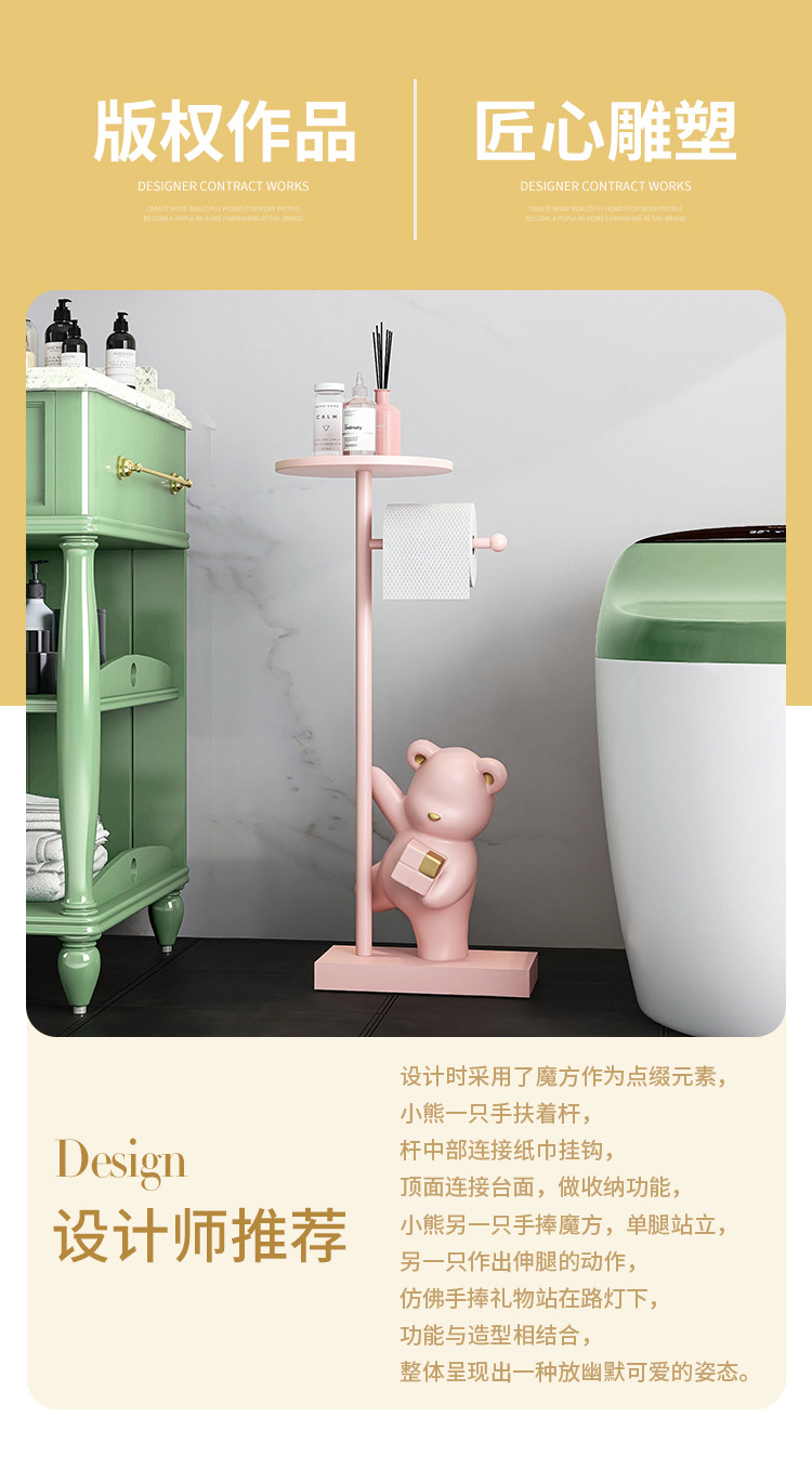 크리에이 티브 화장실 롤 종이 홀더 장식품 화장실 펀치 프리 화장실 측면 홈 장식 루빅스 큐브 곰 보관 선반