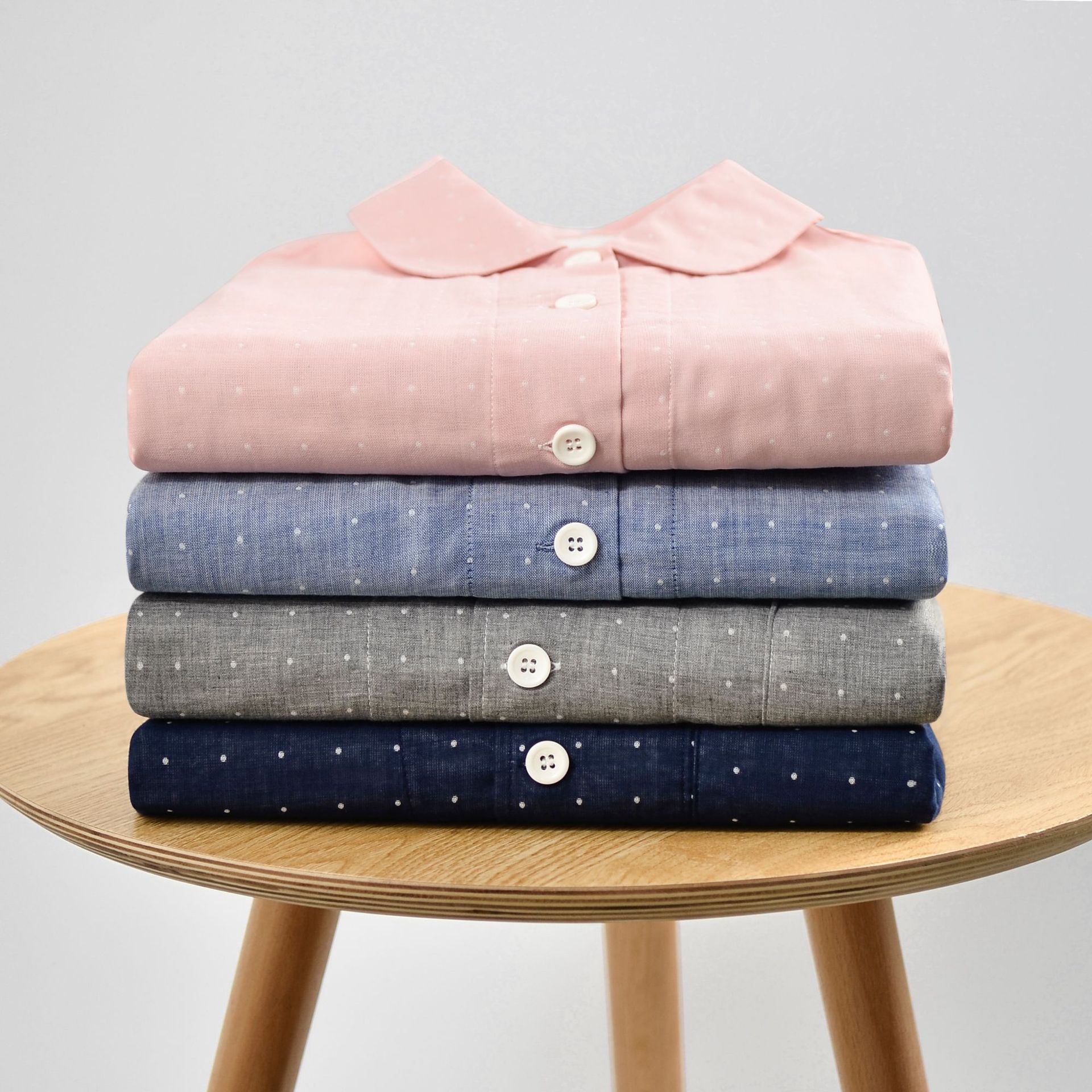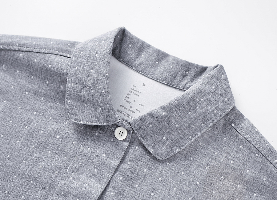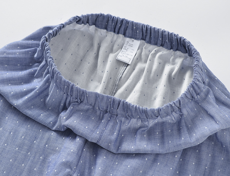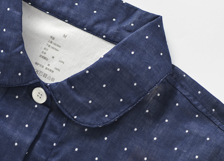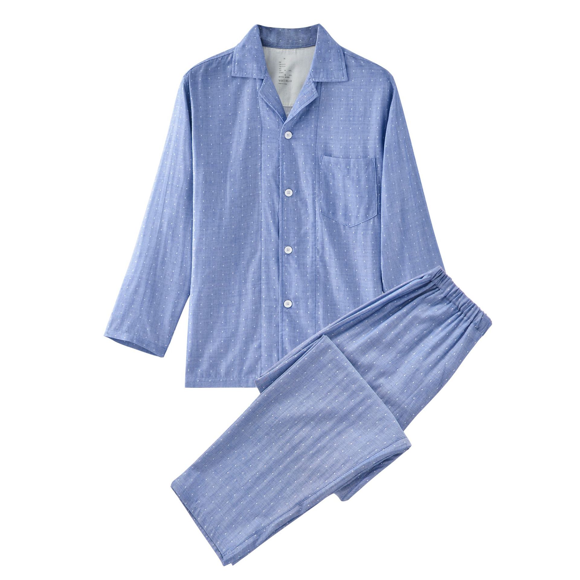 2024 커플의 홈웨어 봄과 가을 세트 홈웨어 폴카 도트 더블 레이어 원사 코튼 남성과 여성의 긴팔 잠옷스토어 가기