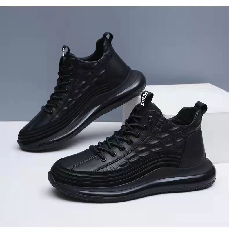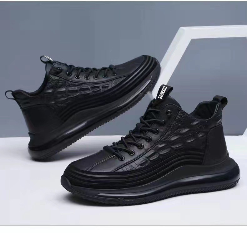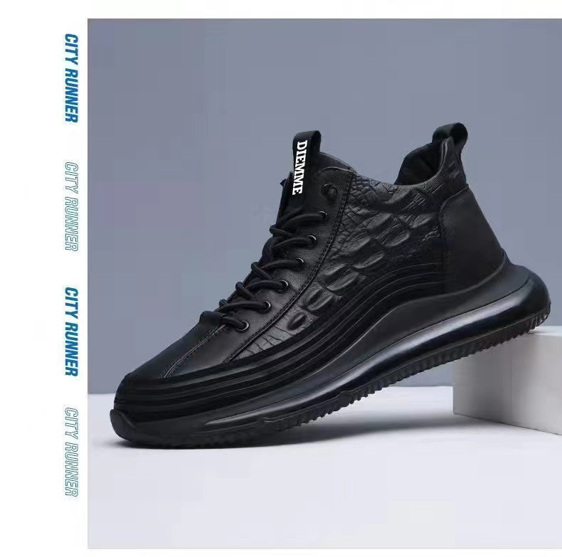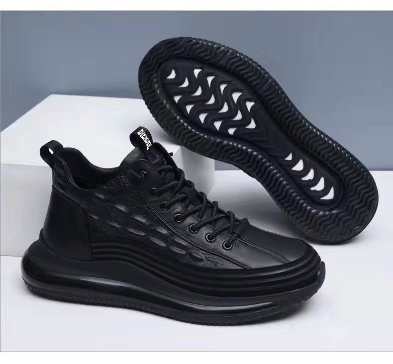 새로운 중립 라운드 발가락 인공 PU 레이디 신발 전면 레이스 업 증가 중간 발 뒤꿈치 남성 캐주얼 가죽 신발 제조 업체 도매스토어 가기