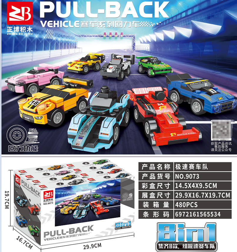 • Zhengbo 9073 풀백 레이싱카, 8개 세트, 8의 배수로 주문하세요