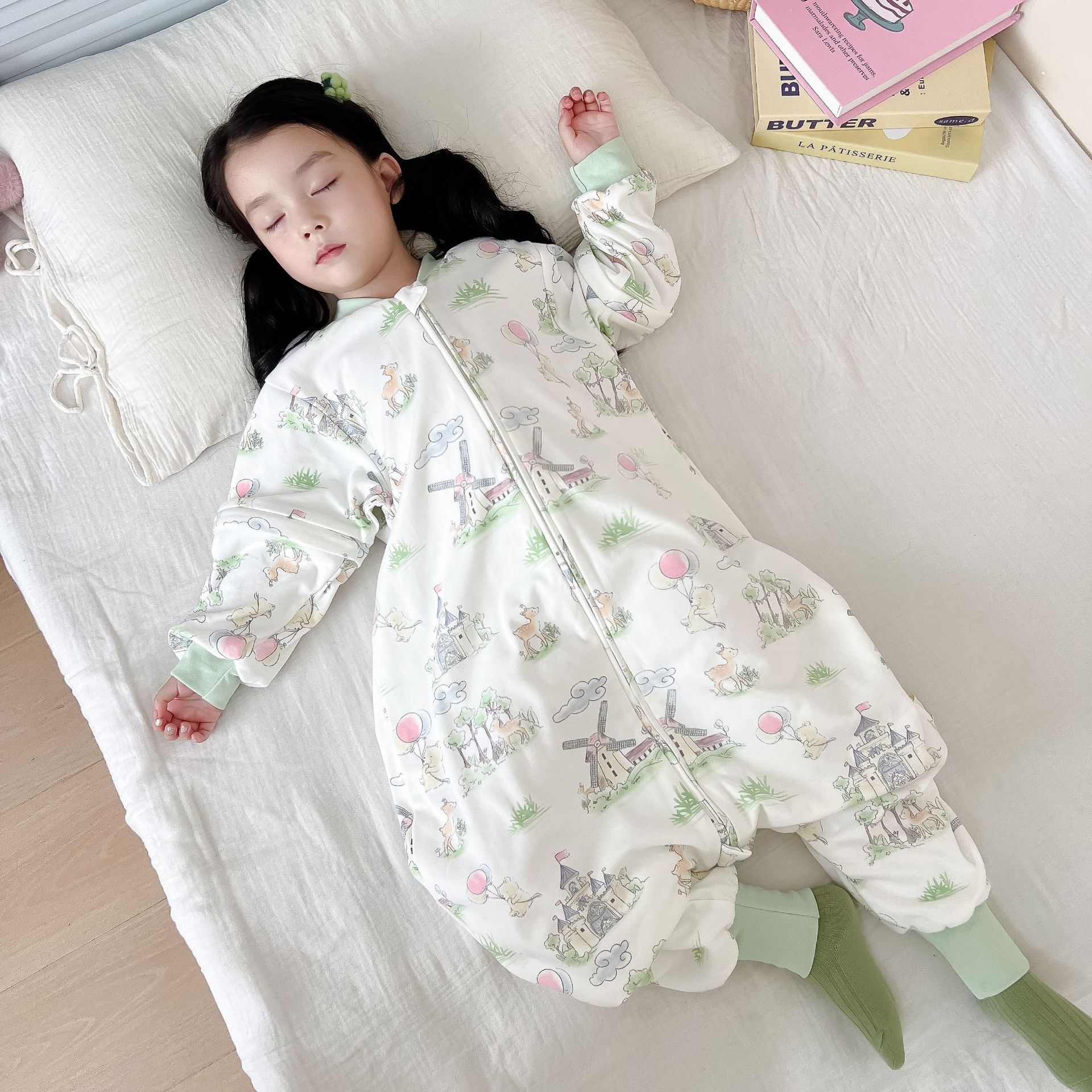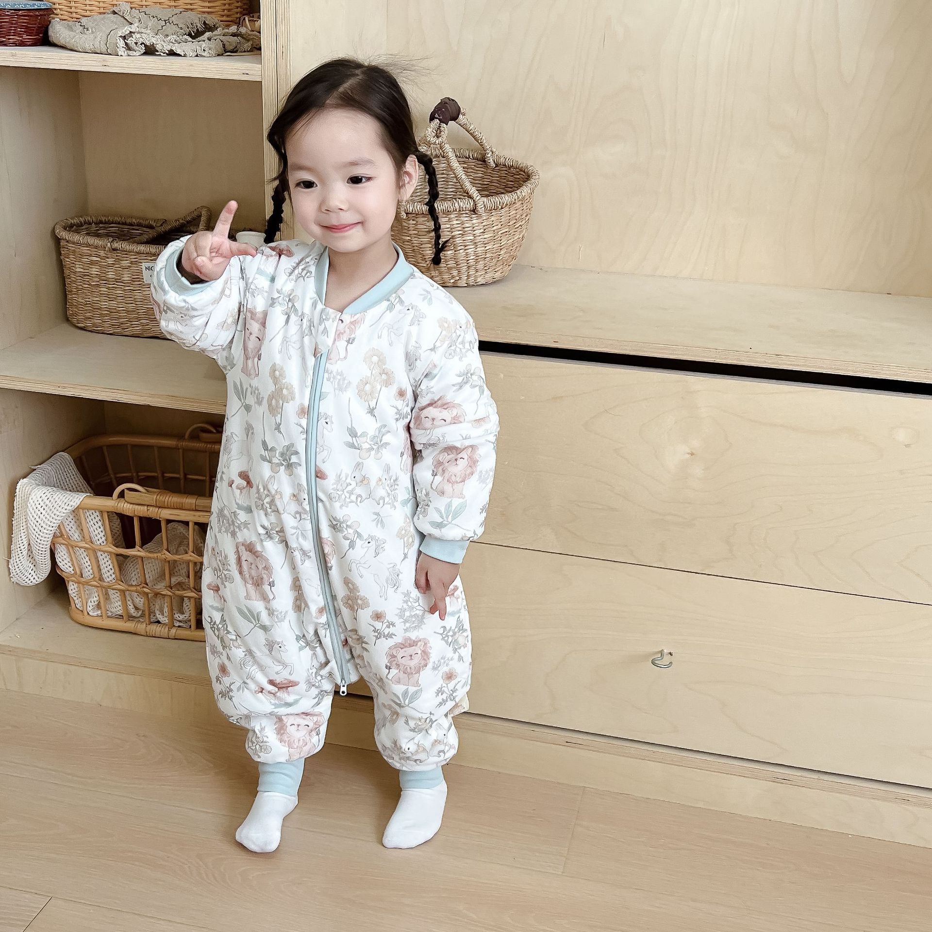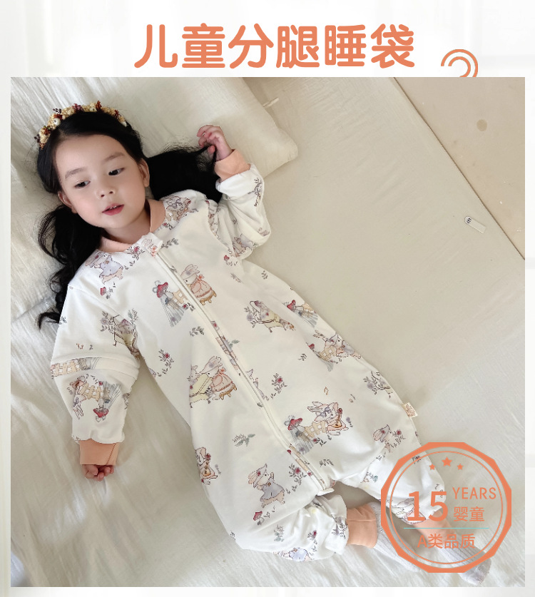 봄과 가을 새로운 더블 레이어 순면 유아용 침낭, 올 시즌 보편적, 탈착식 소매, 어린이 다리 침낭, 발차기 방지스토어 가기