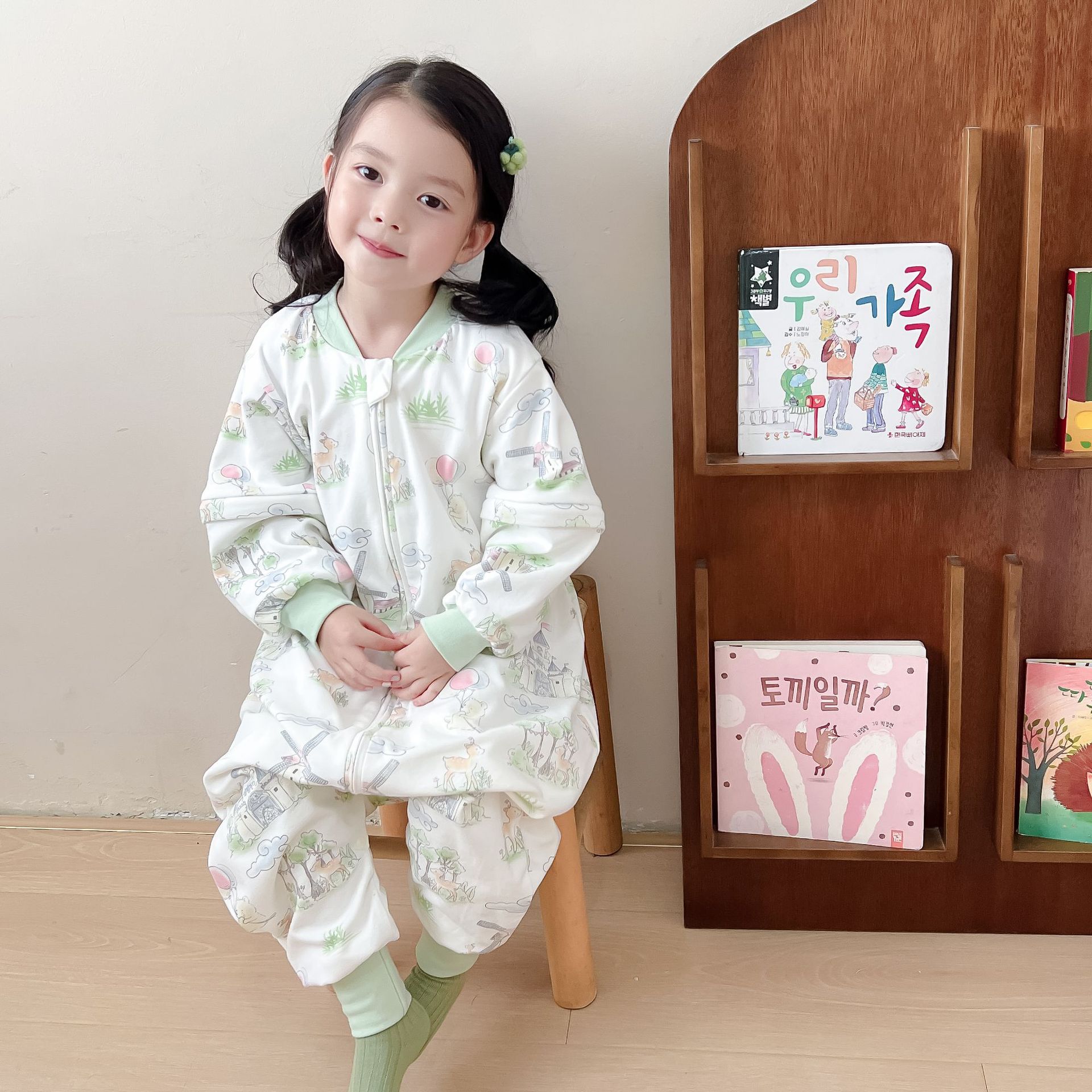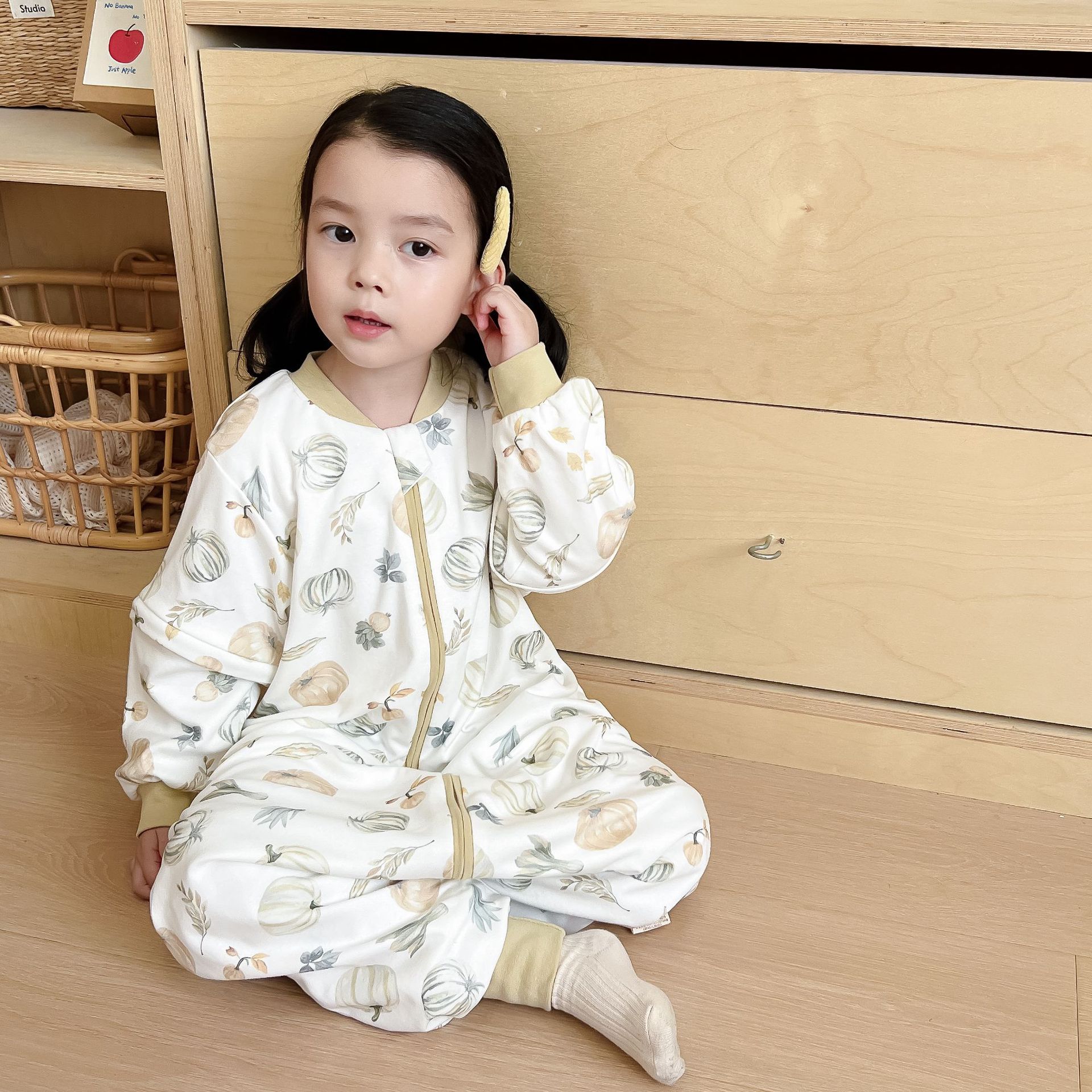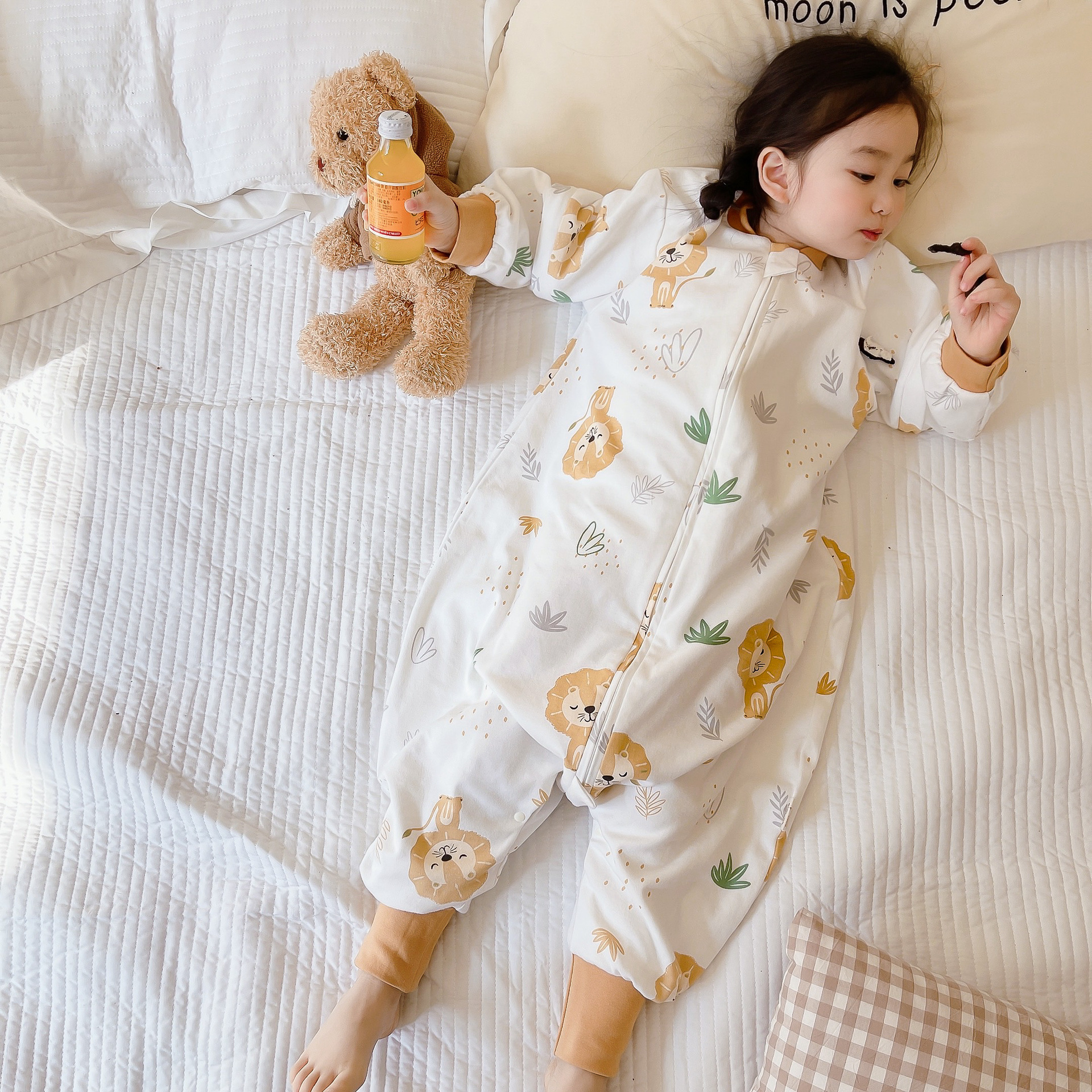 봄과 가을 새로운 더블 레이어 순면 유아용 침낭, 올 시즌 보편적, 탈착식 소매, 어린이 다리 침낭, 발차기 방지스토어 가기