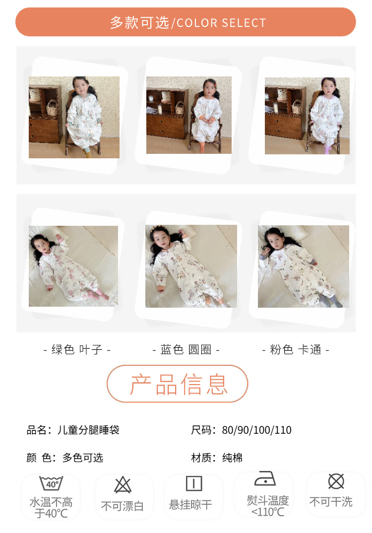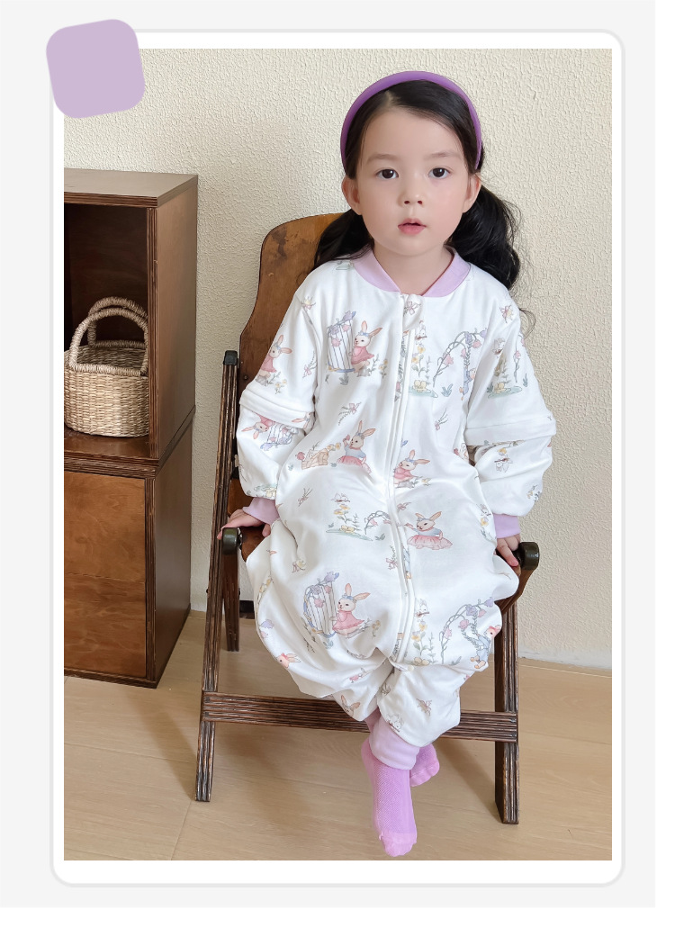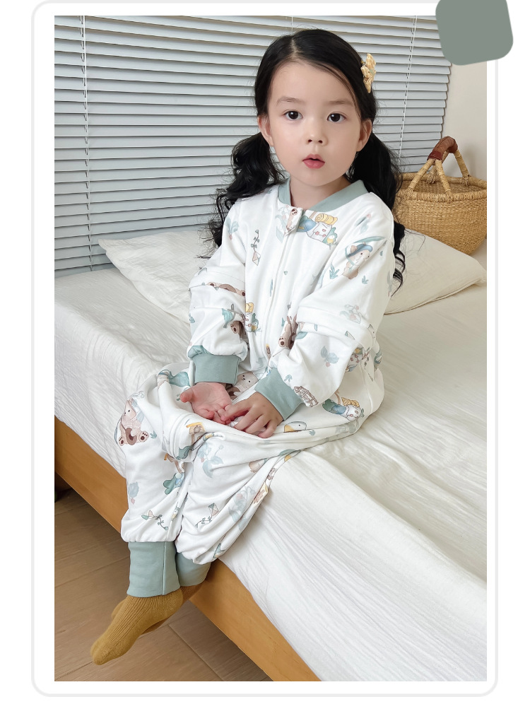 봄과 가을 새로운 더블 레이어 순면 유아용 침낭, 올 시즌 보편적, 탈착식 소매, 어린이 다리 침낭, 발차기 방지