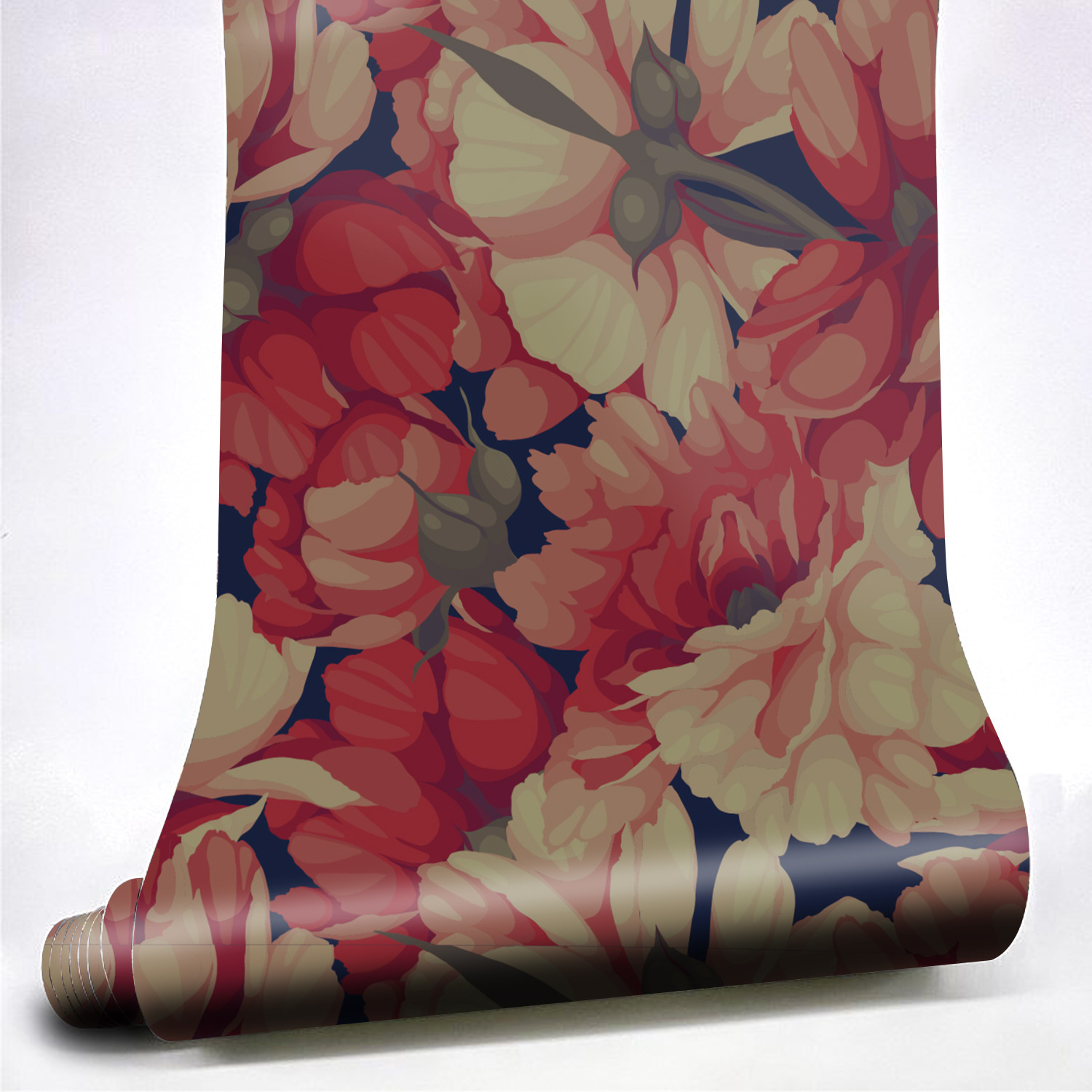Funlife 고급 꽃 자체 접착 롤업 벽지 인터넷 연예인 레스토랑 배경 벽지 방수 스티커 STZ015스토어 가기