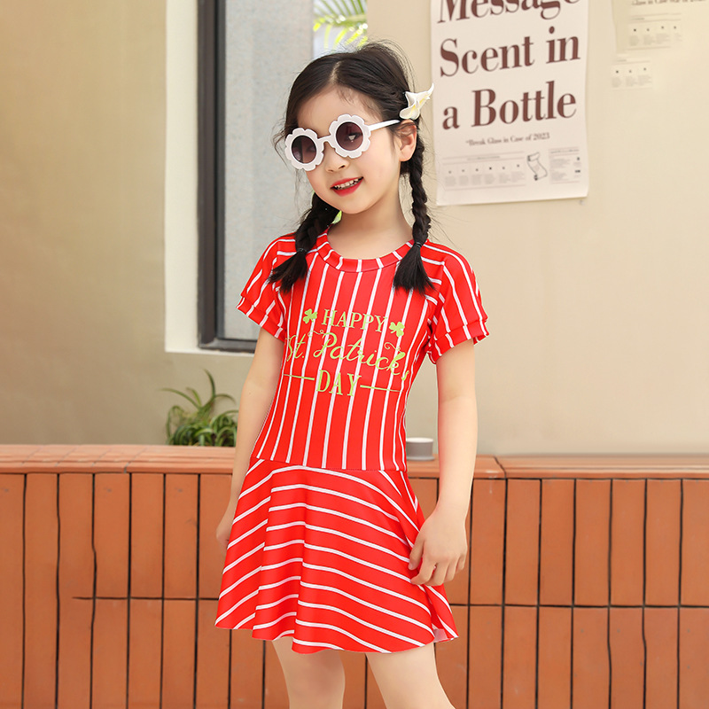 새로운 패션 어린이 원피스 스커트 스포츠 반팔 수영복 공주 스타일 귀여운 학생 소녀 수영복 도매스토어 가기