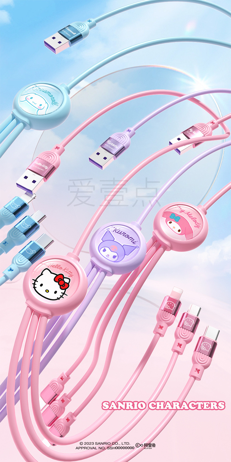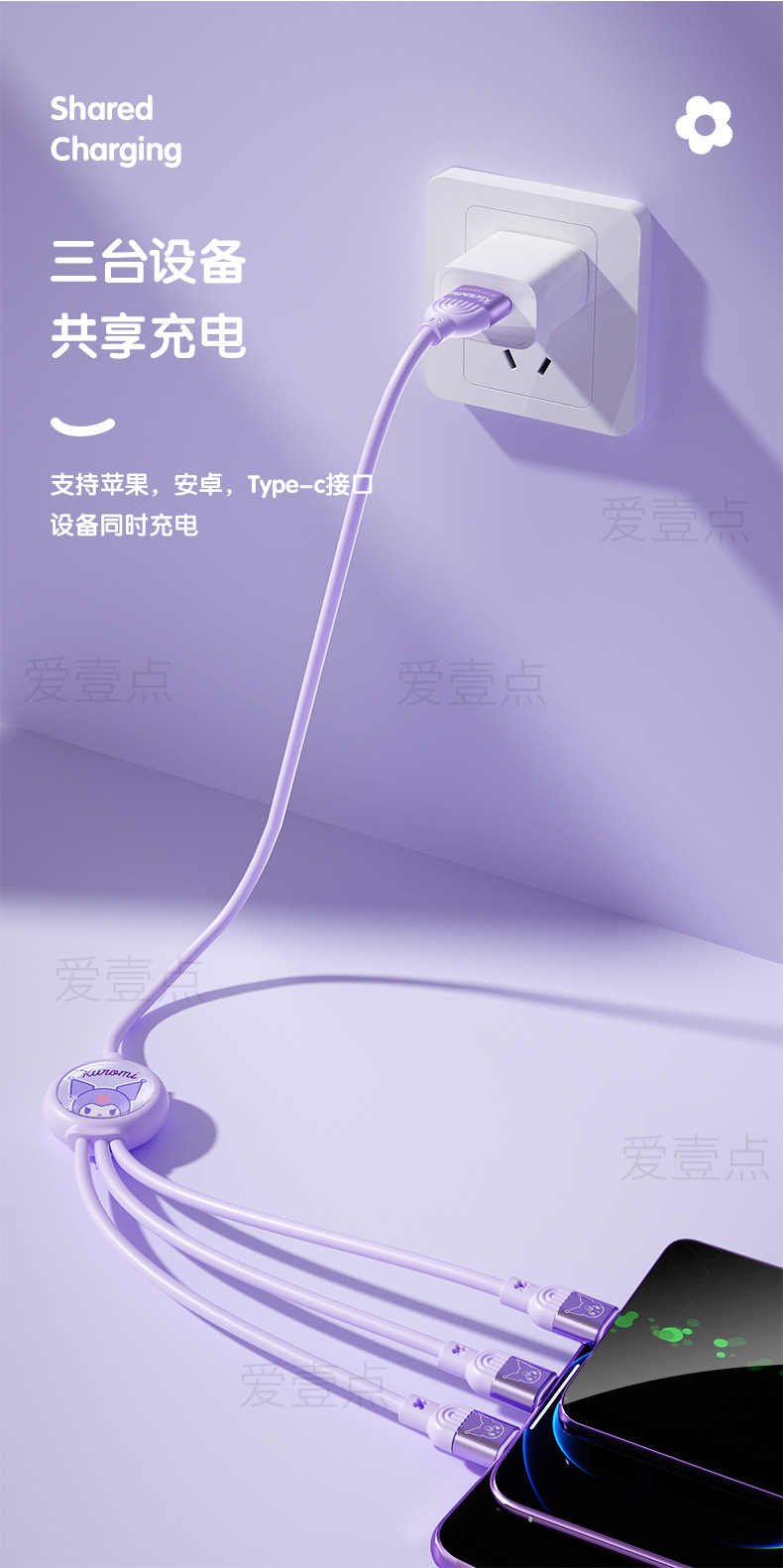 Apple typec 도매 공장에 적합한 Sanrio 66W 초고속 충전 데이터 라인 플래시 충전 1-3 충전 라인스토어 가기