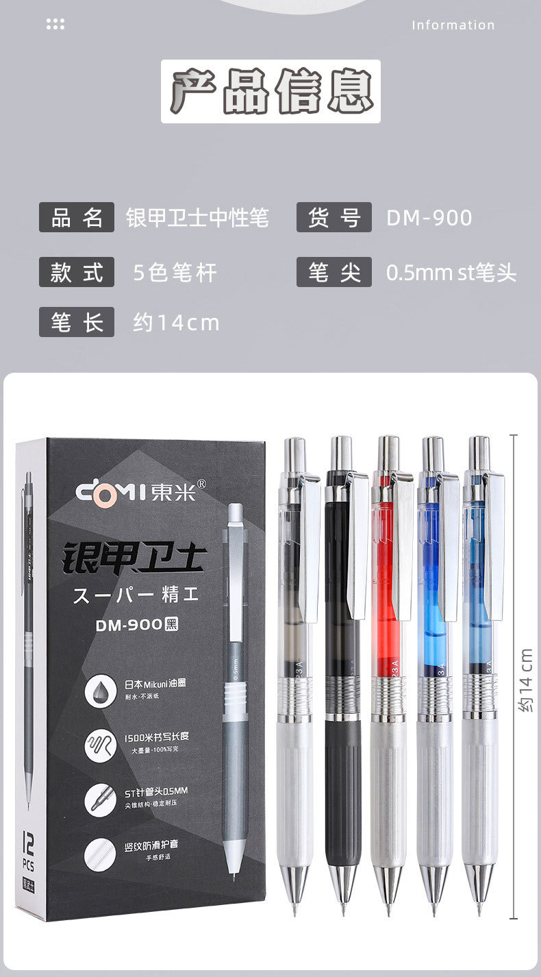 동미 900 실버 갑옷 가드 대용량 처방 펜 의사 처방 펜 블루 블랙 학생 젤 펜 레드 0.5