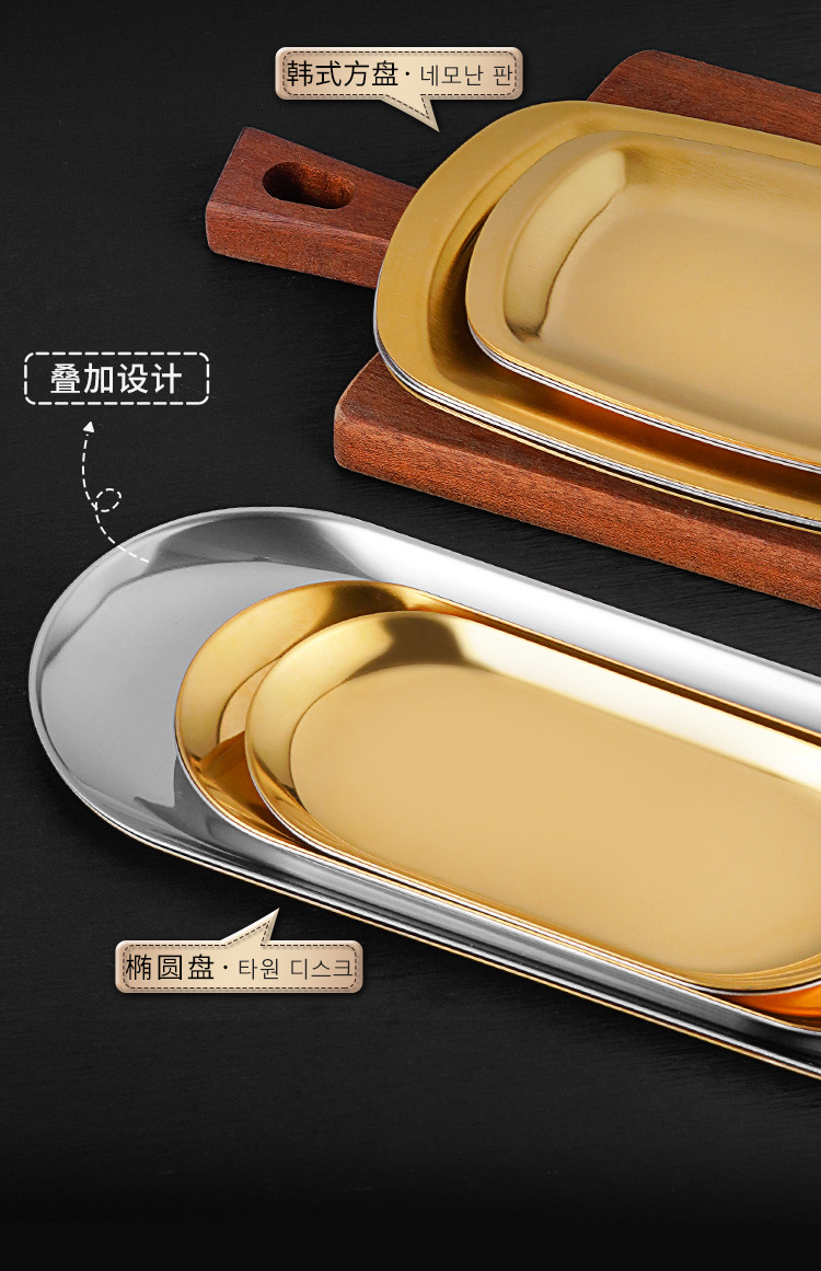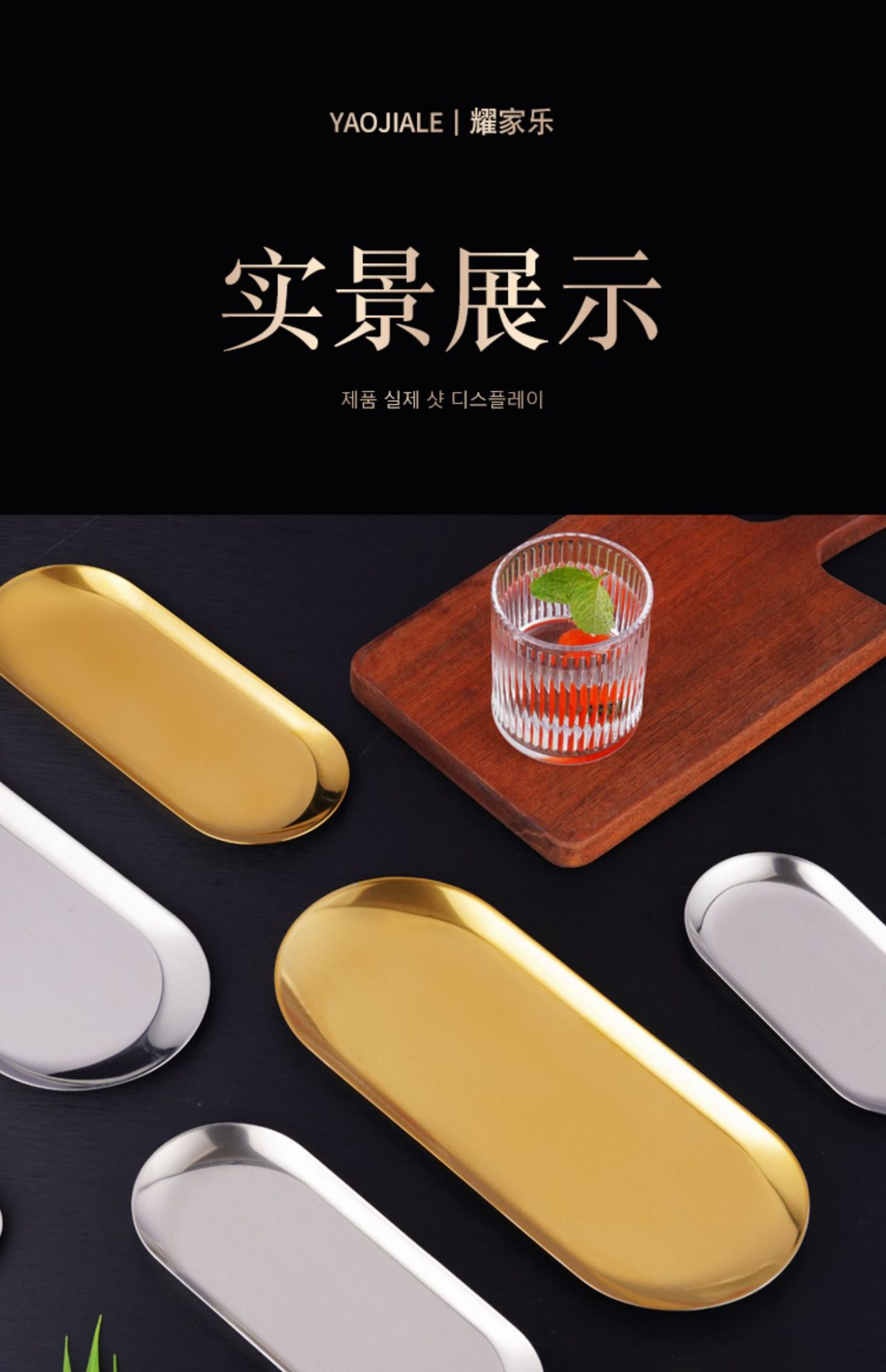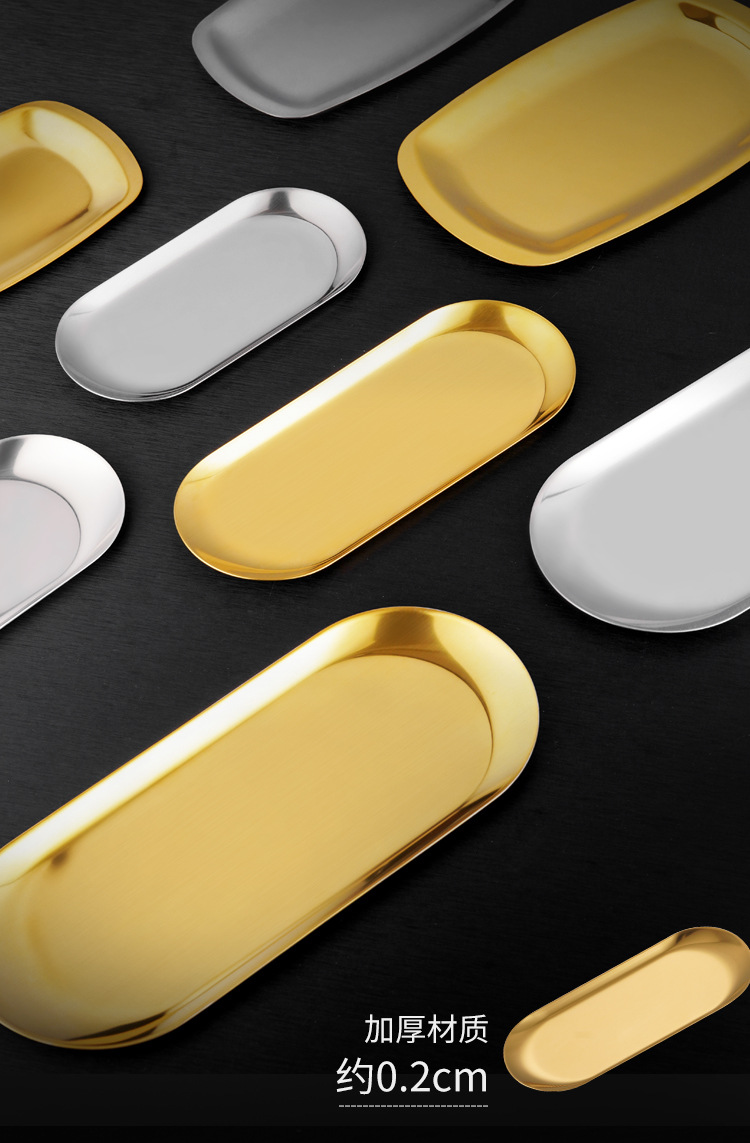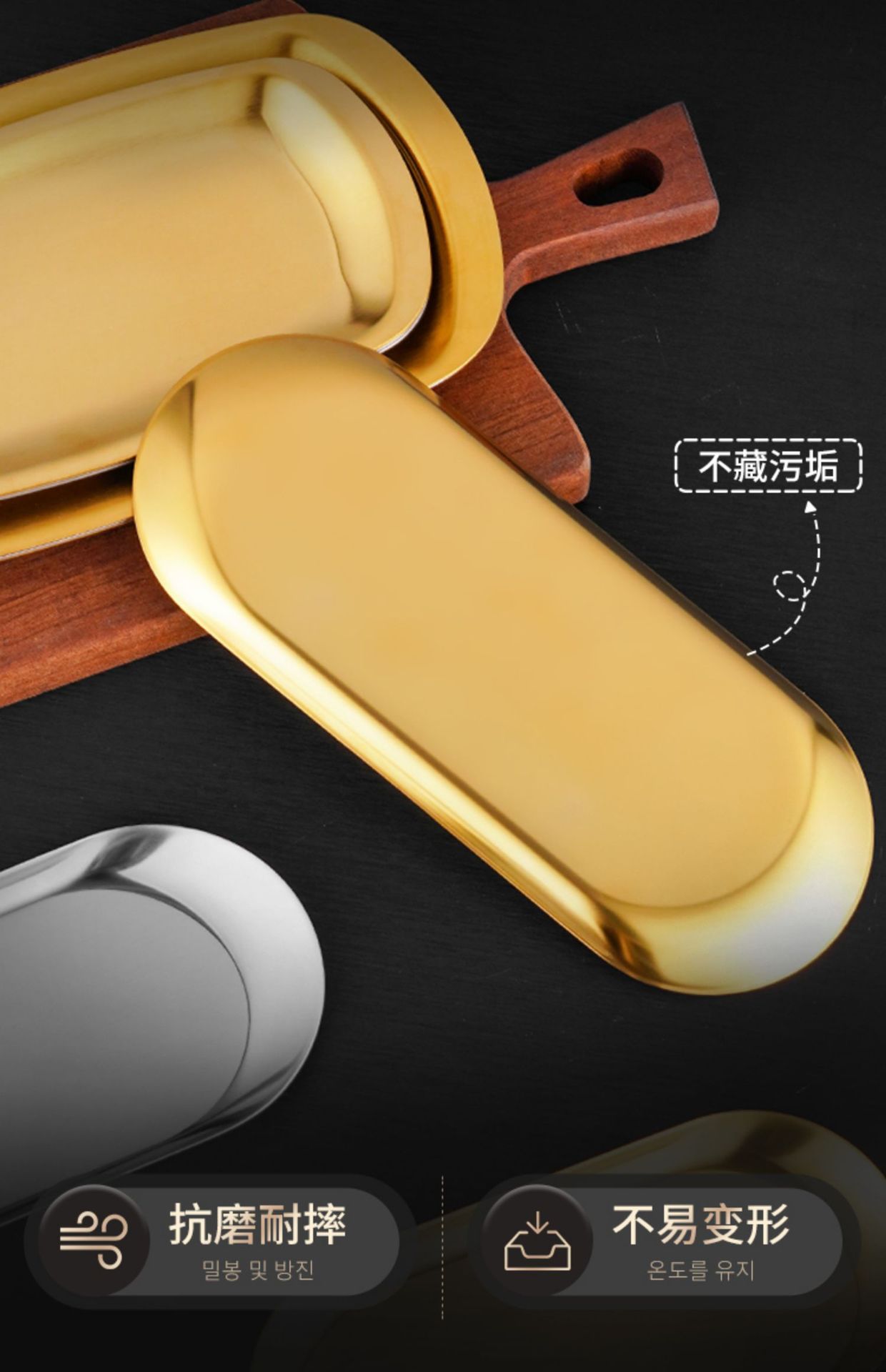 유럽식 스테인리스 접시 수건 접시 타원형 접시 레스토랑 보석 보관 접시 평평한 바닥 금색 작은 트레이 보관 트레이스토어 가기