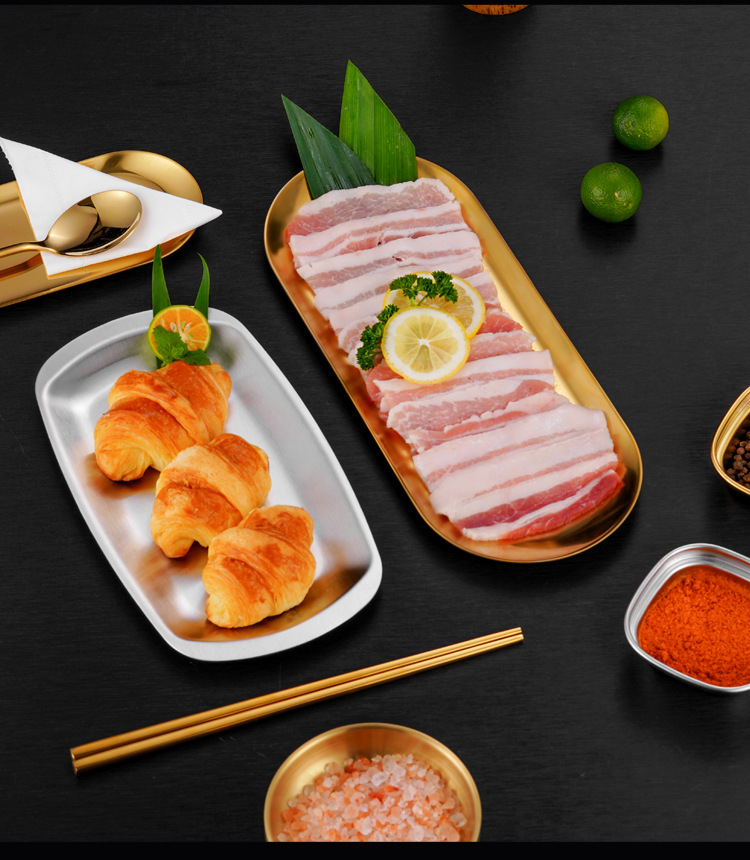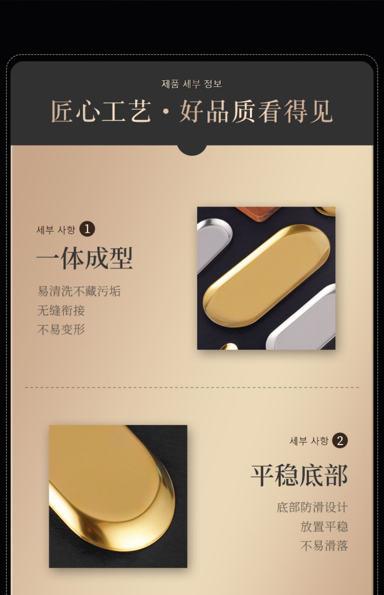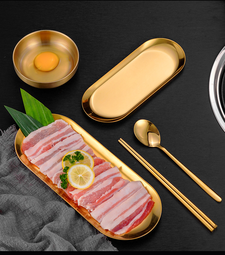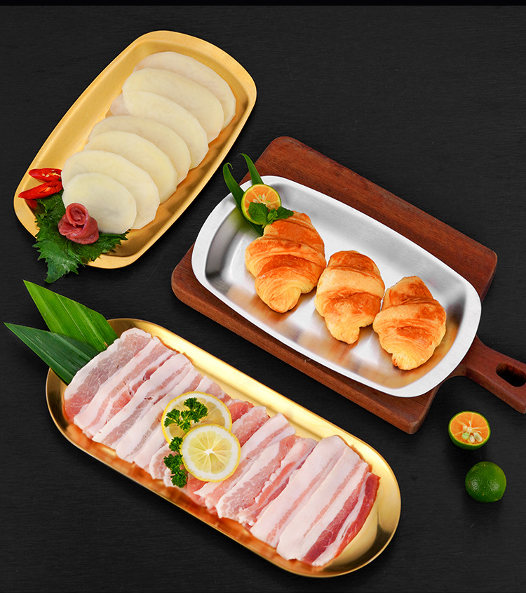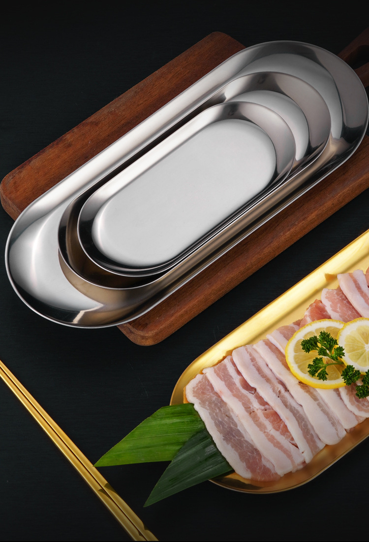 유럽식 스테인리스 접시 수건 접시 타원형 접시 레스토랑 보석 보관 접시 평평한 바닥 금색 작은 트레이 보관 트레이스토어 가기
