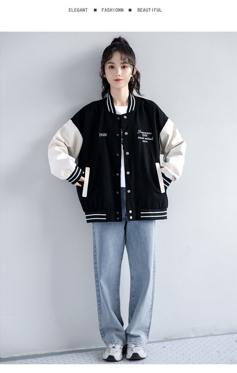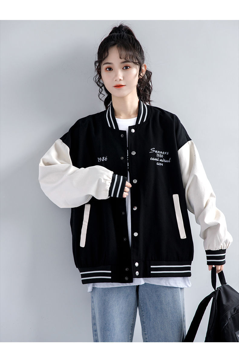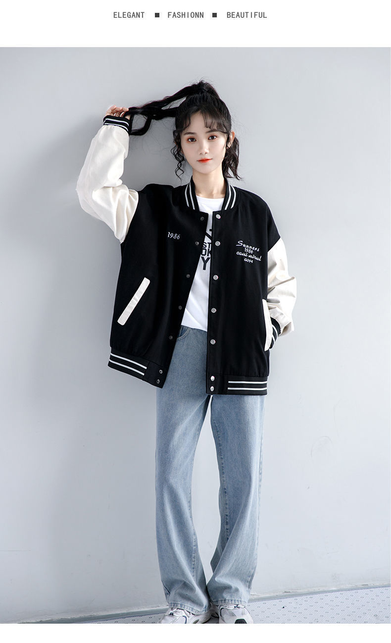야구 유니폼 재킷 소녀 봄, 가을 2024 신입생 중학생 및 고등학생 한국 스타일 느슨한 자수 재킷 탑스토어 가기