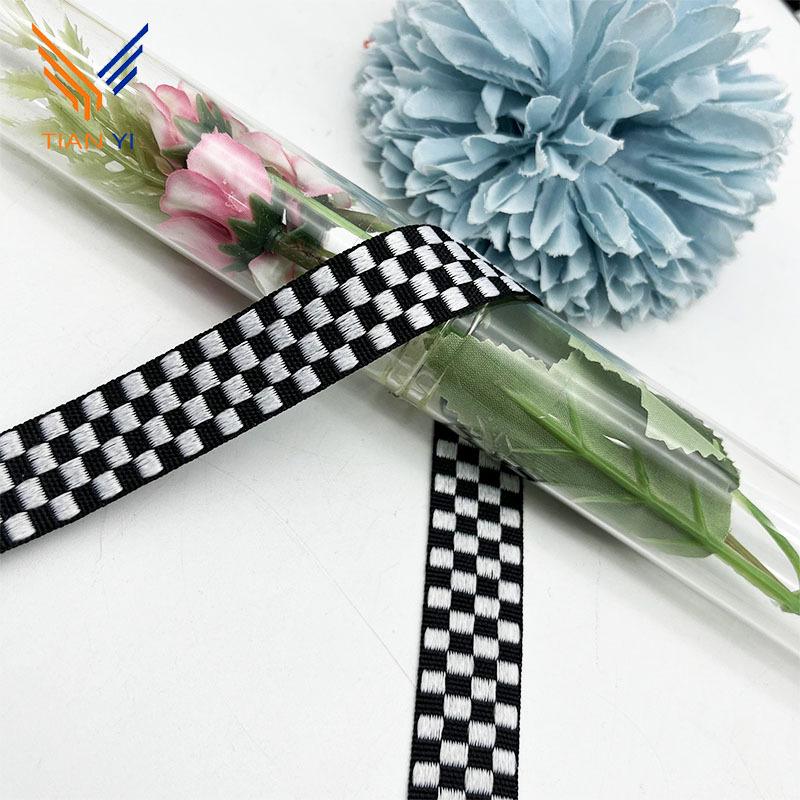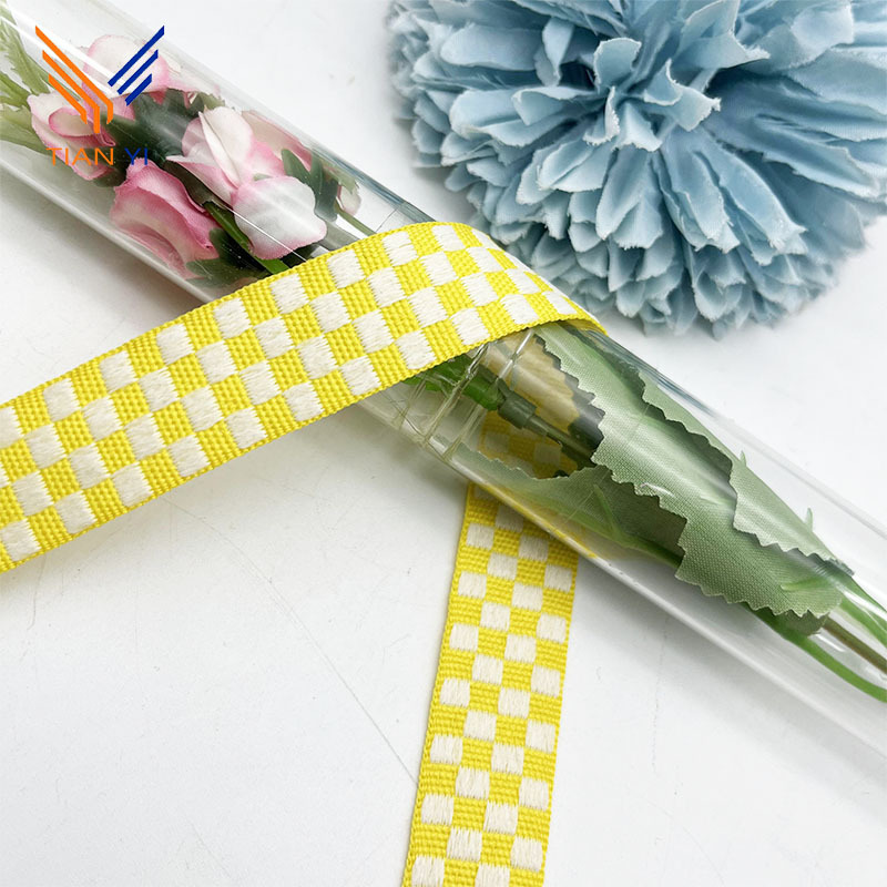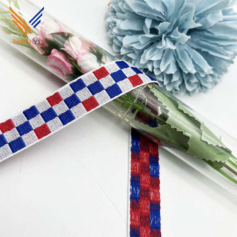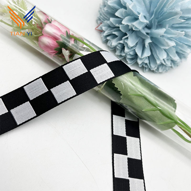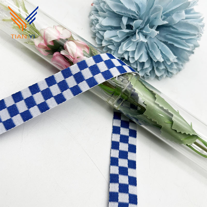 2.5cm 인터 컬러 격자 무늬 자카드 리본 도매 홈 섬유 아동복 운동복 사이드 스트립 의류 액세서리 재고스토어 가기