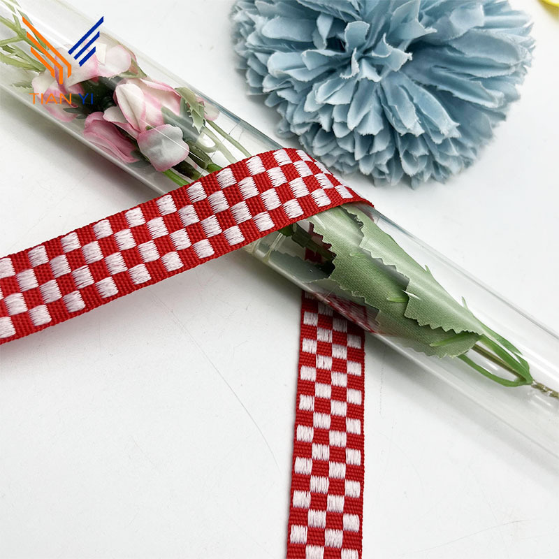 2.5cm 인터 컬러 격자 무늬 자카드 리본 도매 홈 섬유 아동복 운동복 사이드 스트립 의류 액세서리 재고
