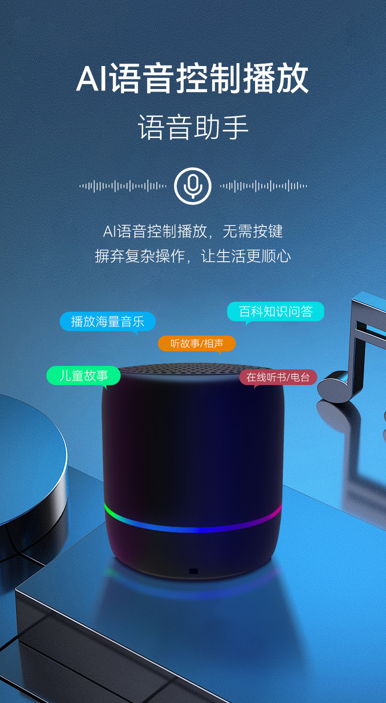 국경 간 새로운 무선 블루투스 스피커 AI 스마트 보이스 컨트롤 소형 스테레오 휴대용 서브 우퍼 야외 미니스토어 가기
