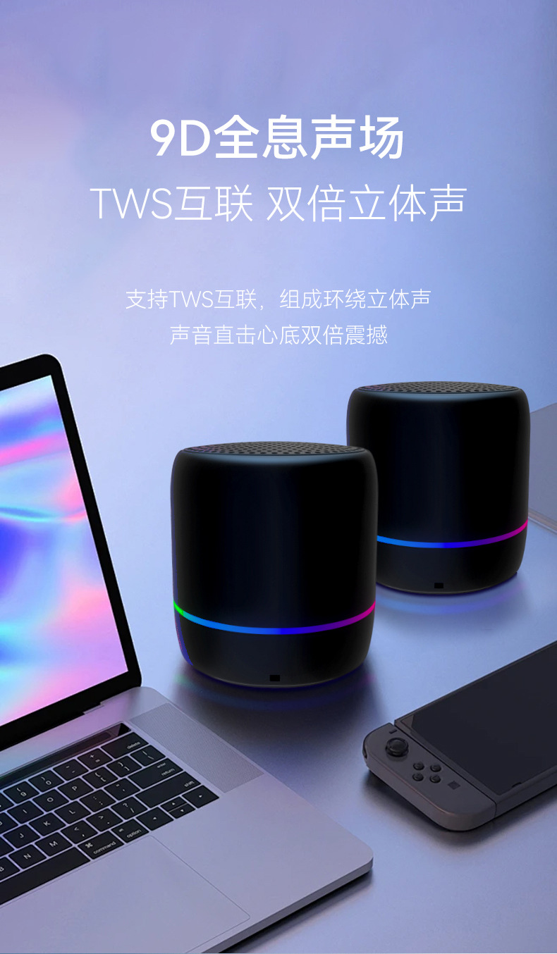 국경 간 새로운 무선 블루투스 스피커 AI 스마트 보이스 컨트롤 소형 스테레오 휴대용 서브 우퍼 야외 미니