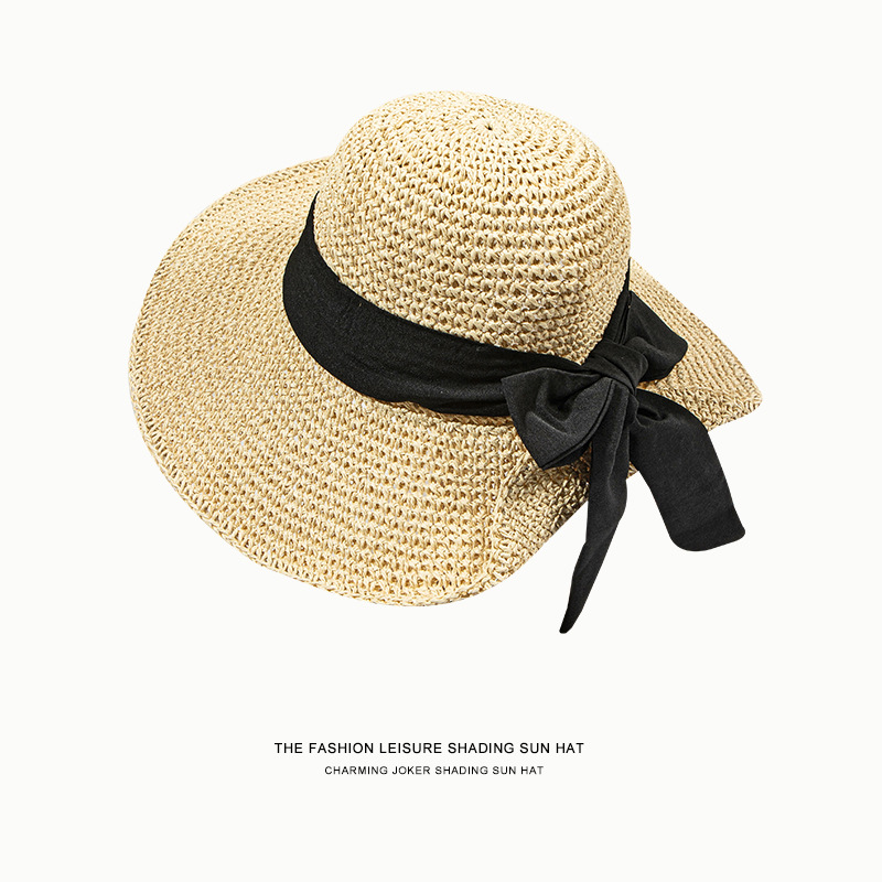 검은 활 어부 모자 여성용 밀짚 모자 일본식 큰 챙 여름 여행 모든 경기 자외선 차단제 태양 모자 봄 여름스토어 가기