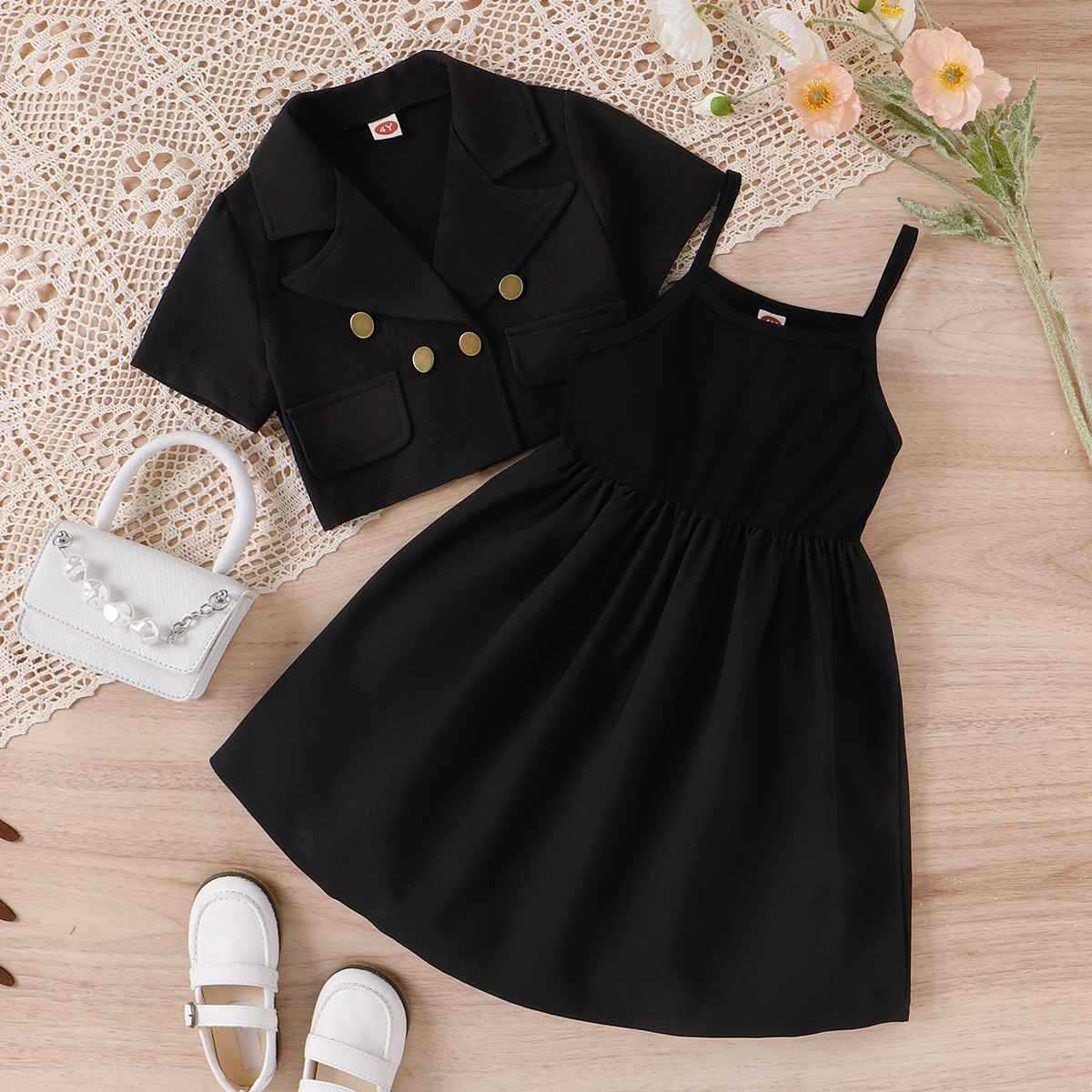 Baopin 아동복 한국 스타일 봄과 여름 새로운 패션 소녀의 세트 재킷 스트랩 대형 스커트 투피스 어린이 세트