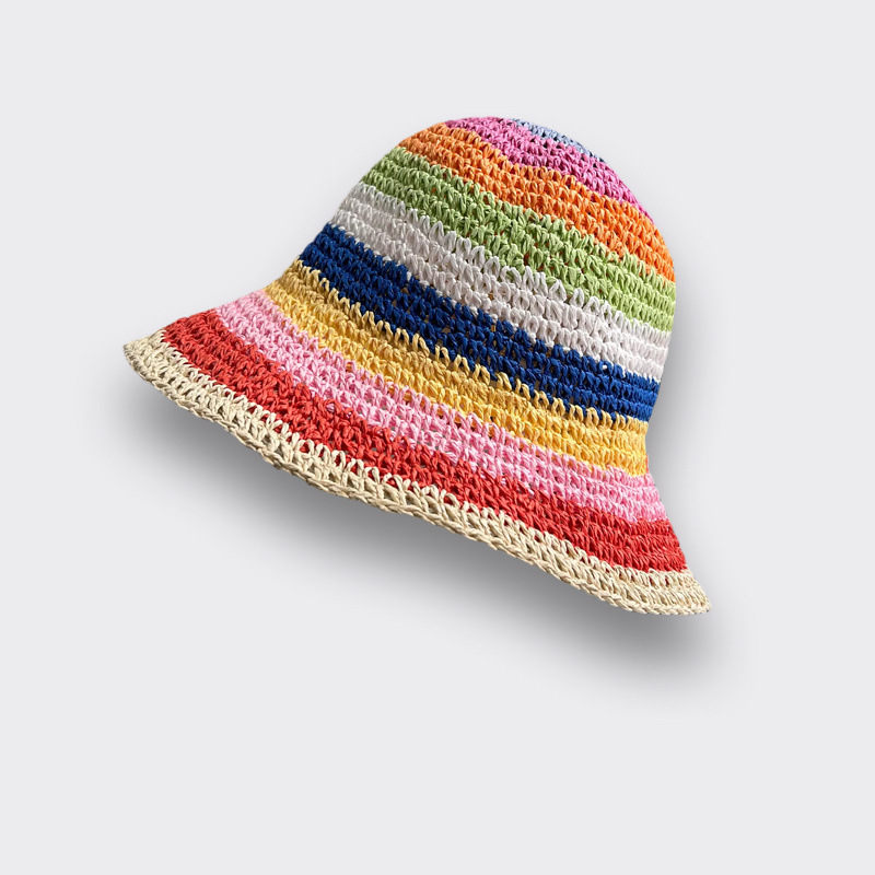일본 스타일 레인보우 밀짚 모자 여자의 여름 여행 태양 보호 해변 어부 모자 밀짚 줄무늬 얼굴 취재 냄비 모자스토어 가기