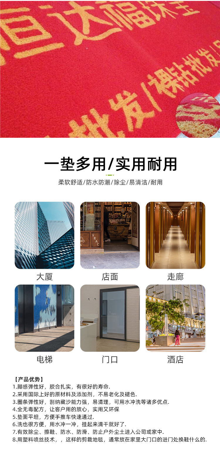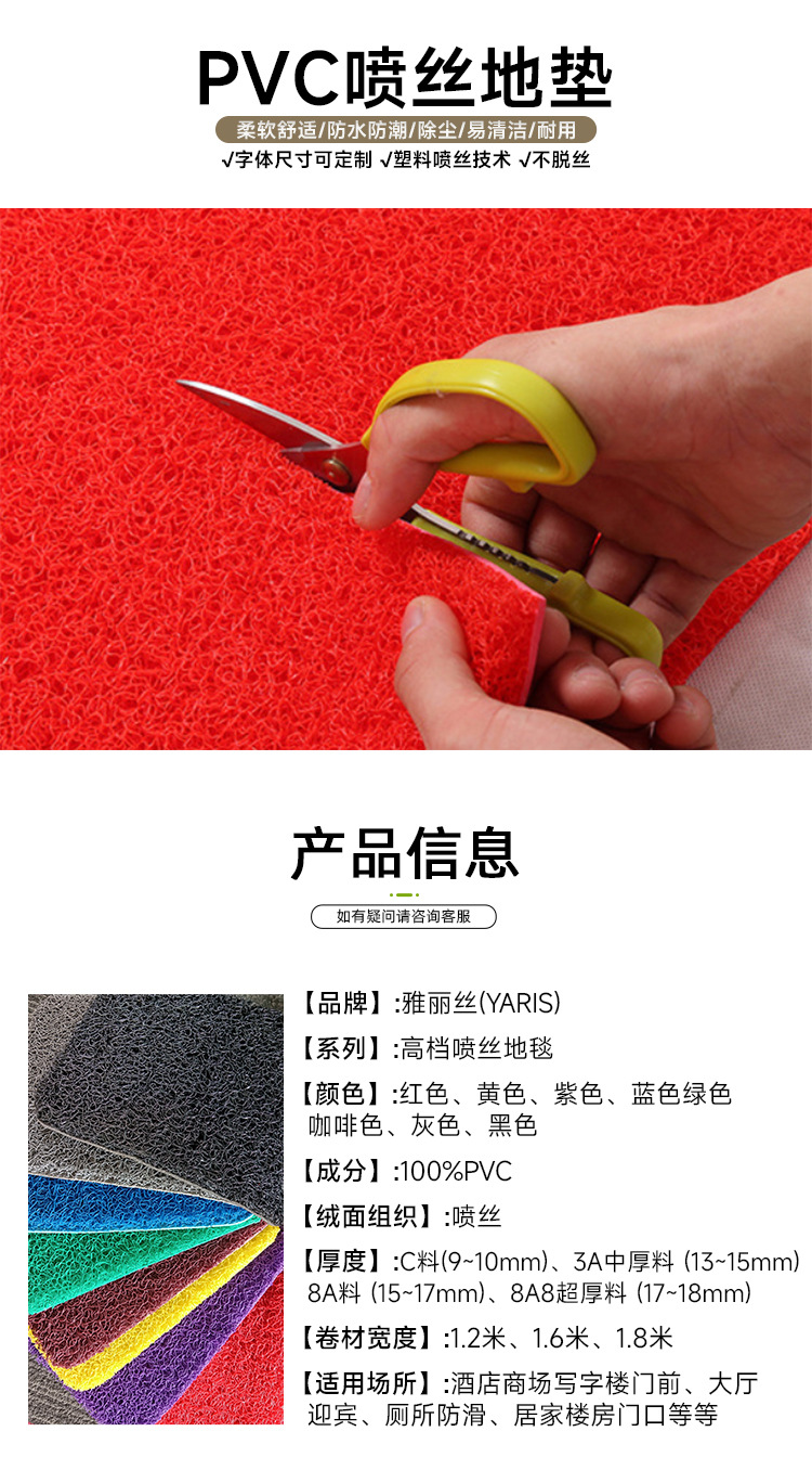 절단 가능 PVC 두꺼운 실크 링 플라스틱 입구 엘리베이터 호텔 미끄럼 방지 매트 방수 바닥 매트 레드 카펫