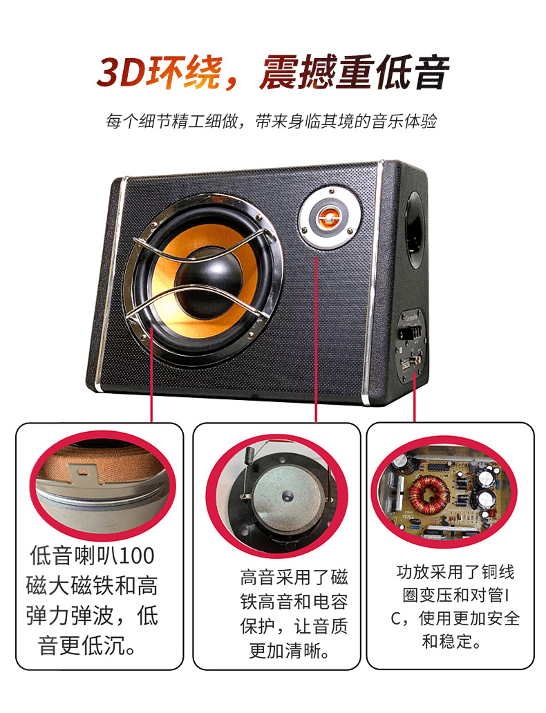 8 인치 사다리꼴 고출력 12V 액티브 카 오디오 트럭 카드 서브 우퍼 카 대형 오디오 수정스토어 가기