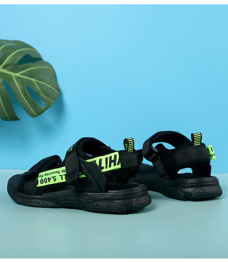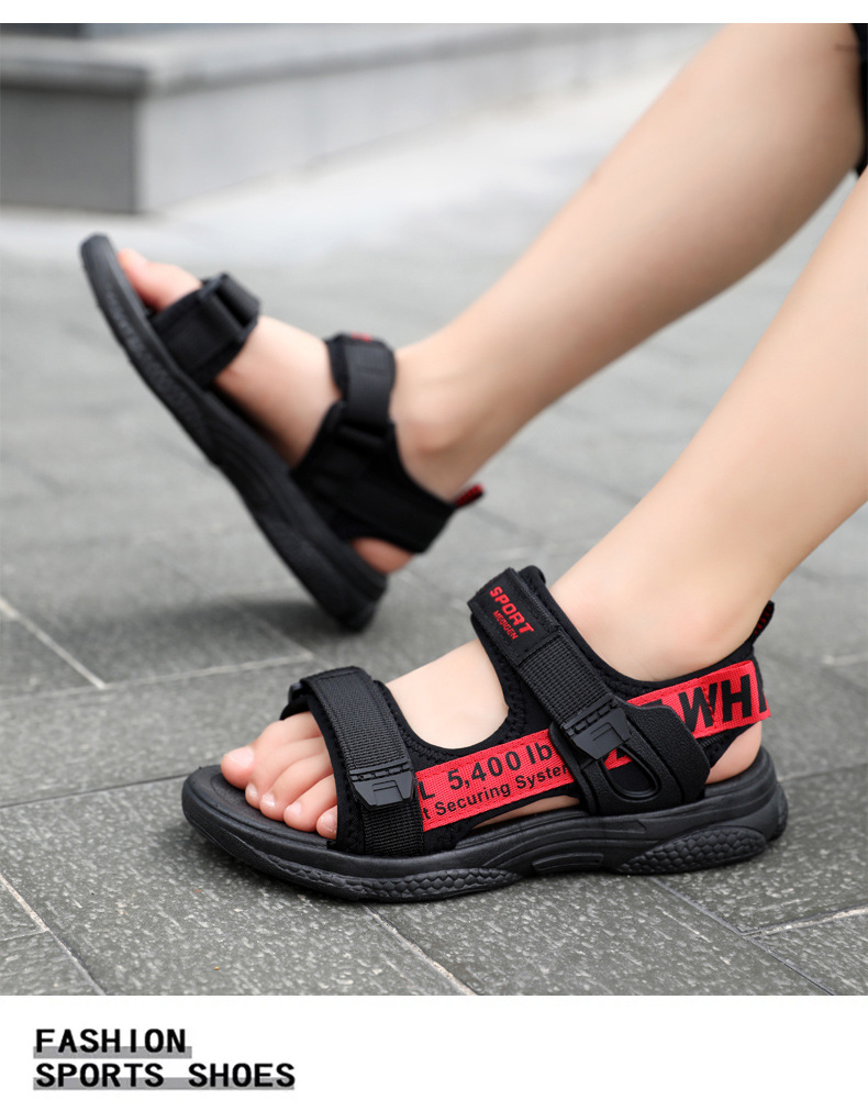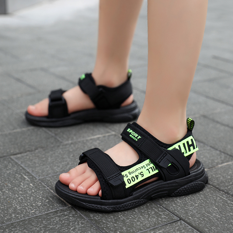 소년 샌들 2024 여름 어린이 해변 신발 중형 및 대형 어린이 학생 신발 부드러운 단독 미끄럼 방지 남성 신발 겉옷 어린이 샌들스토어 가기