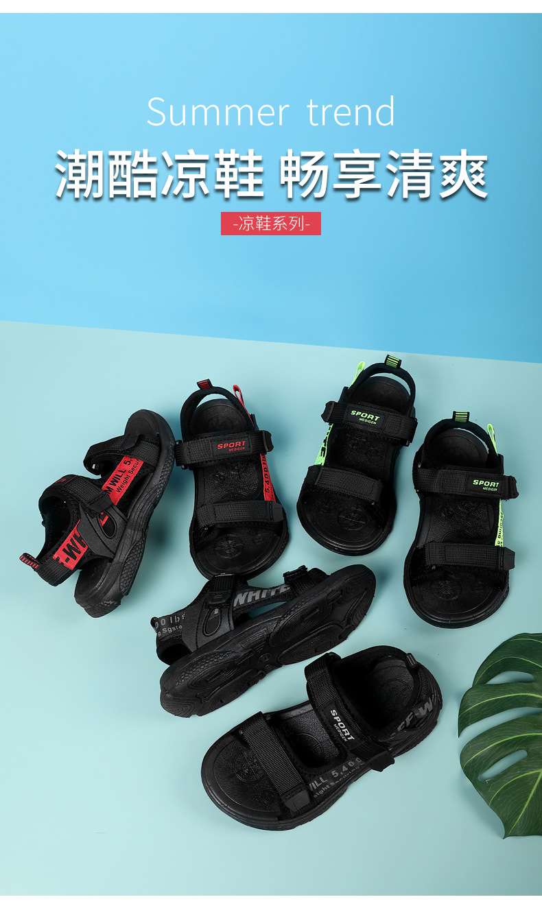 소년 샌들 2024 여름 어린이 해변 신발 중형 및 대형 어린이 학생 신발 부드러운 단독 미끄럼 방지 남성 신발 겉옷 어린이 샌들