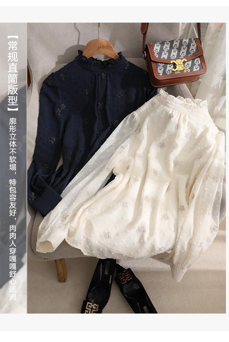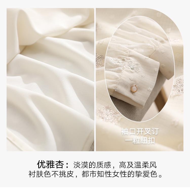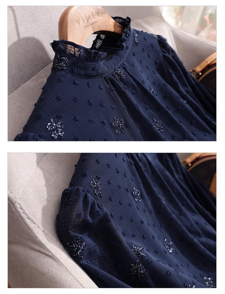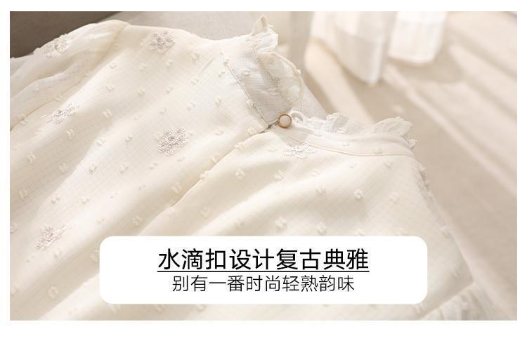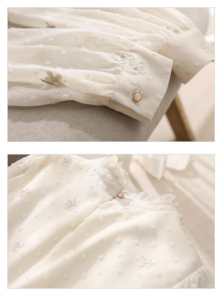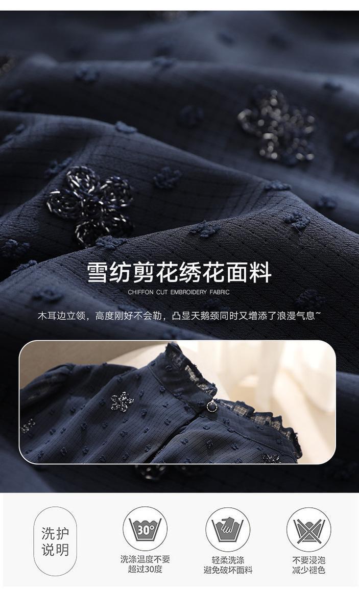 2023 년 봄과 가을 서양식 귀 가장자리 칼라 셔츠 여성 배꼽이 덮인 시폰 셔츠스토어 가기