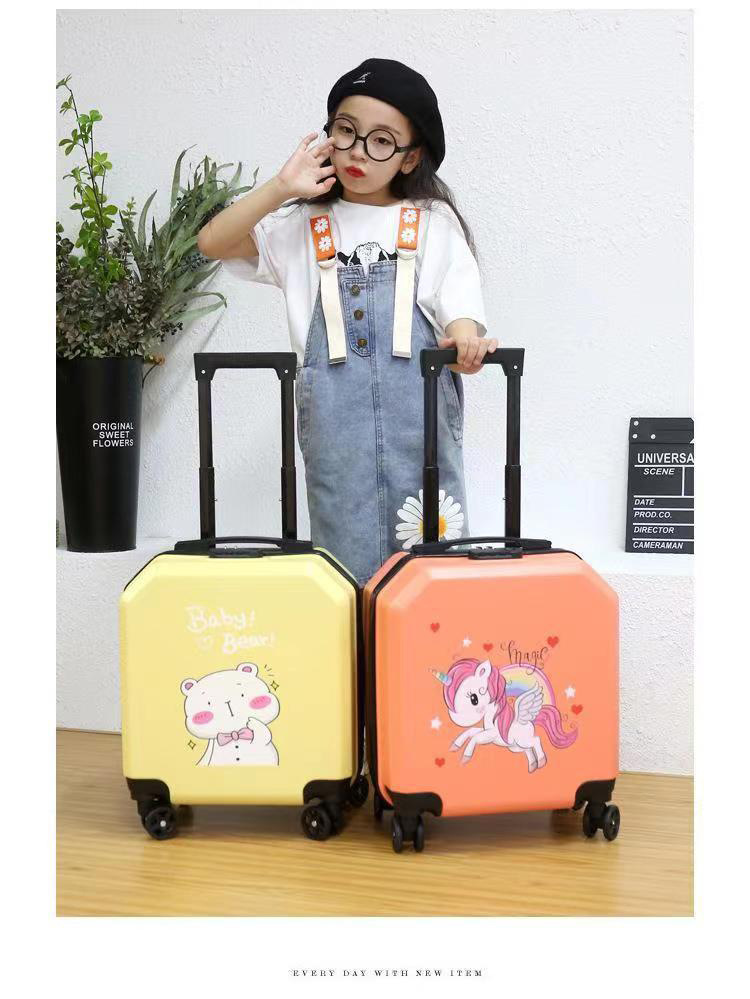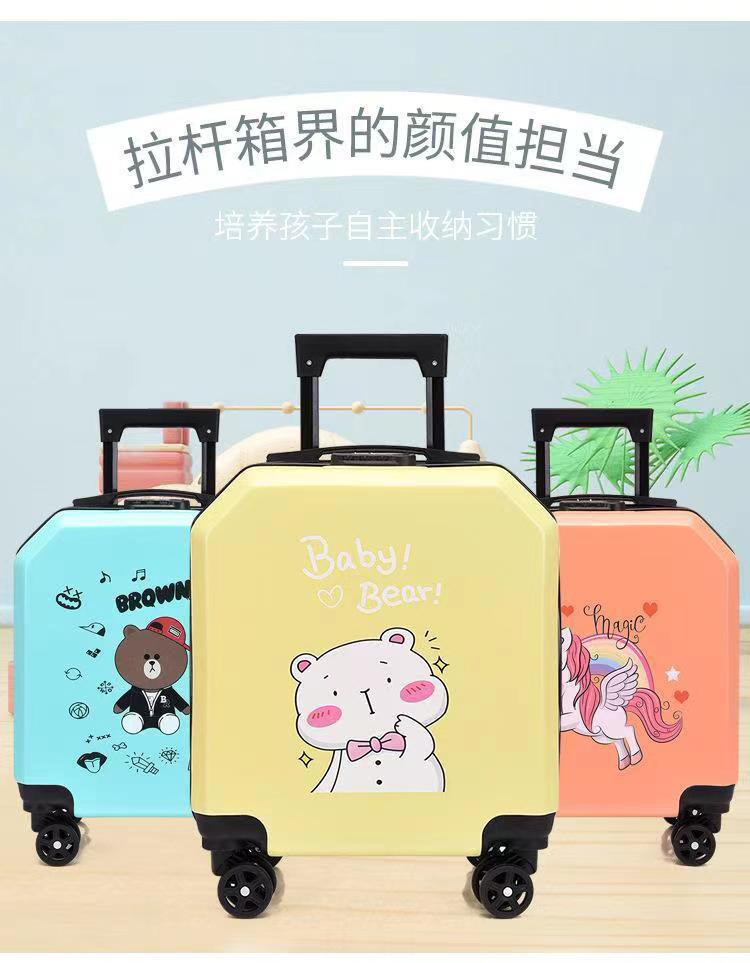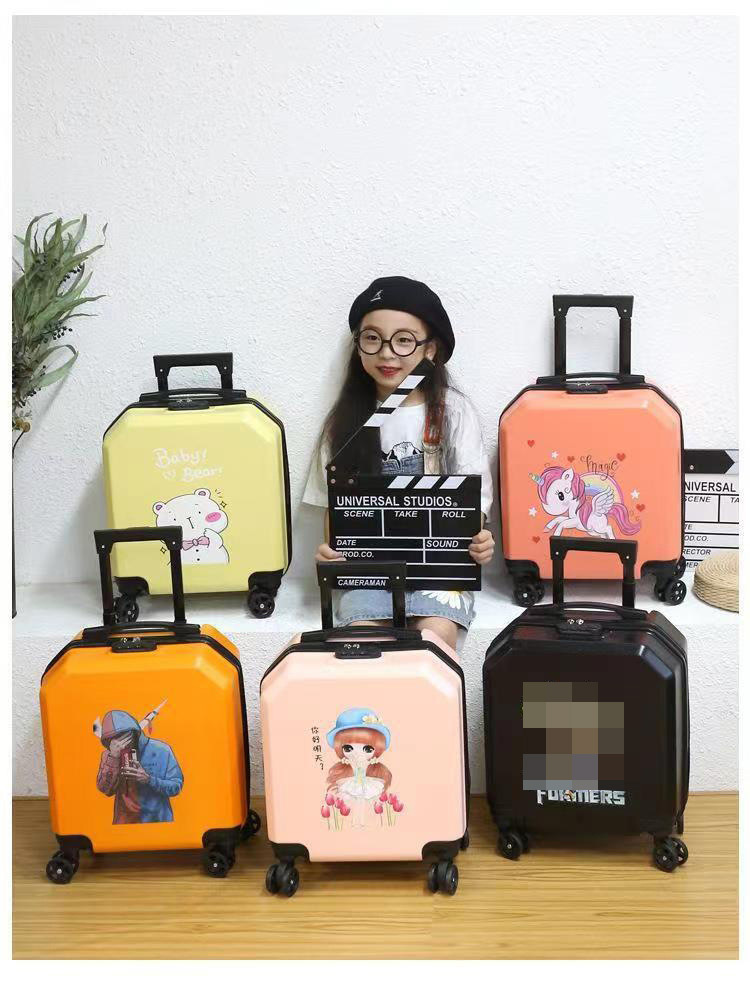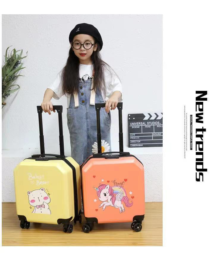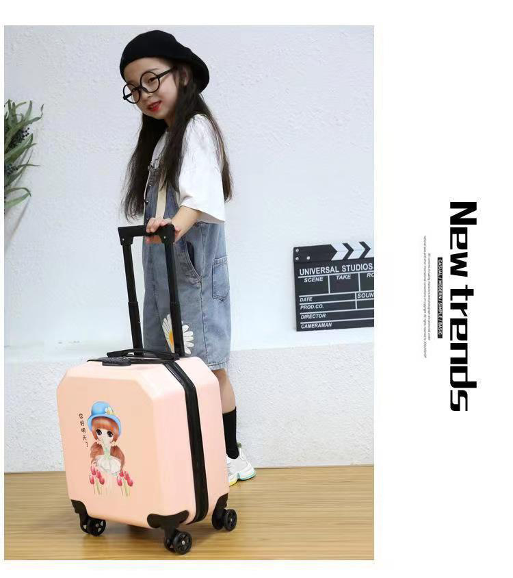 새로운 귀여운 만화 어린이 트롤리 케이스 18 인치 유니버설 휠 수하물 잠금 보딩 박스 선물 상자스토어 가기