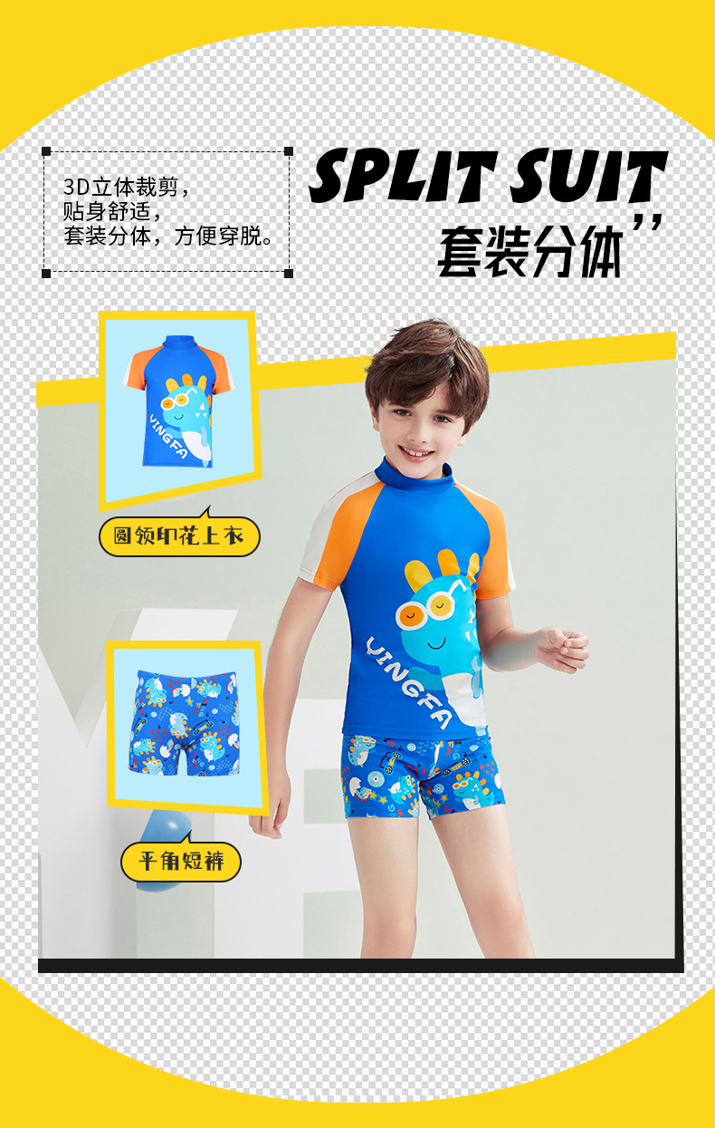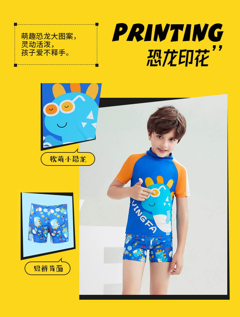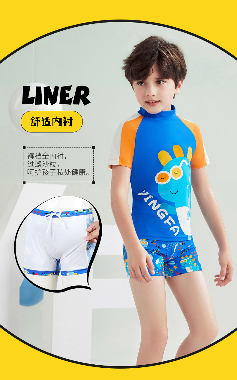 Yingfa 소년 분할 수영복 반팔 레저 워터 파크 어린이를위한 수영 세트 Y0557스토어 가기