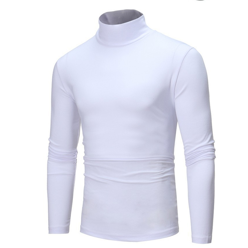 2022 레저 가을과 겨울 새로운 청소년 남성용 하이 칼라 얇은 단색 슬림 패션 긴팔 티셔츠스토어 가기