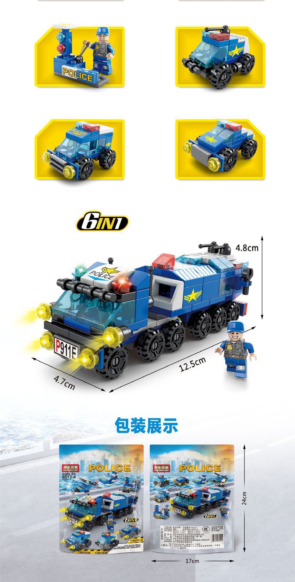 르레 브라더스 8612 미니 백 소방대 해군 경찰 군사 소형 입자 교육 조립 선물 완구
