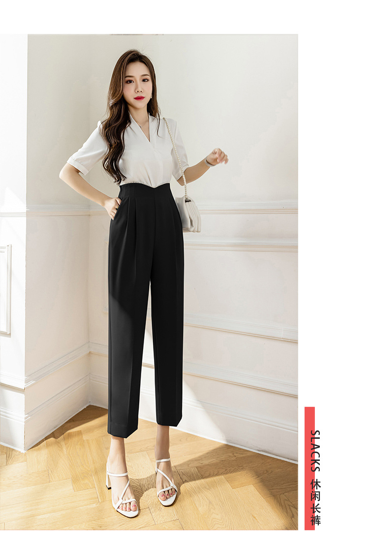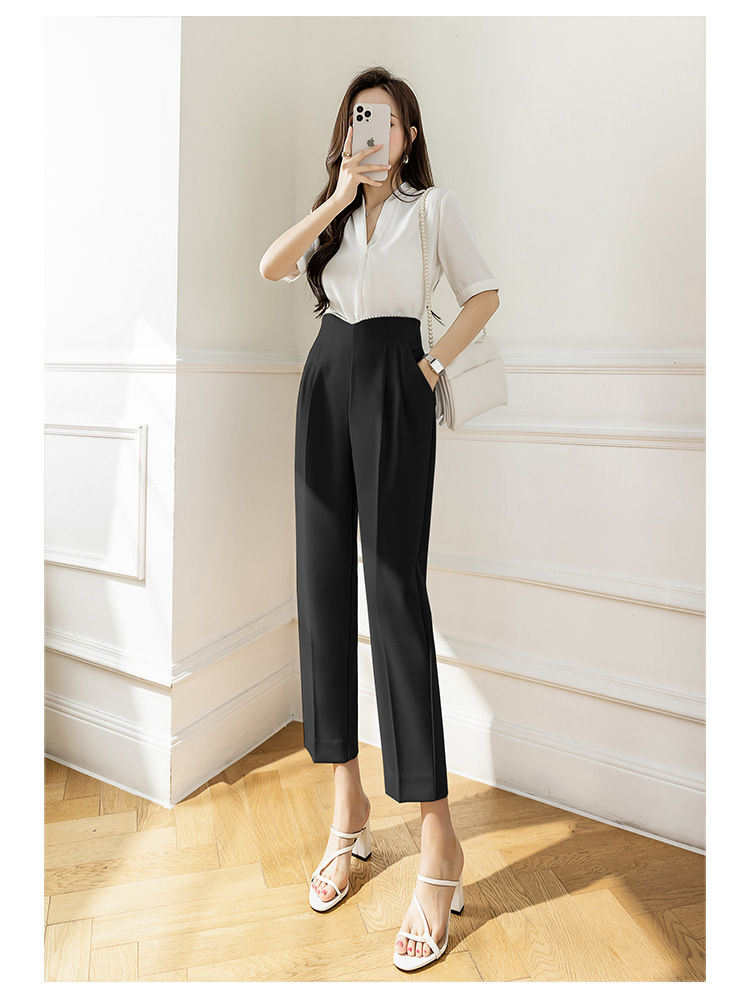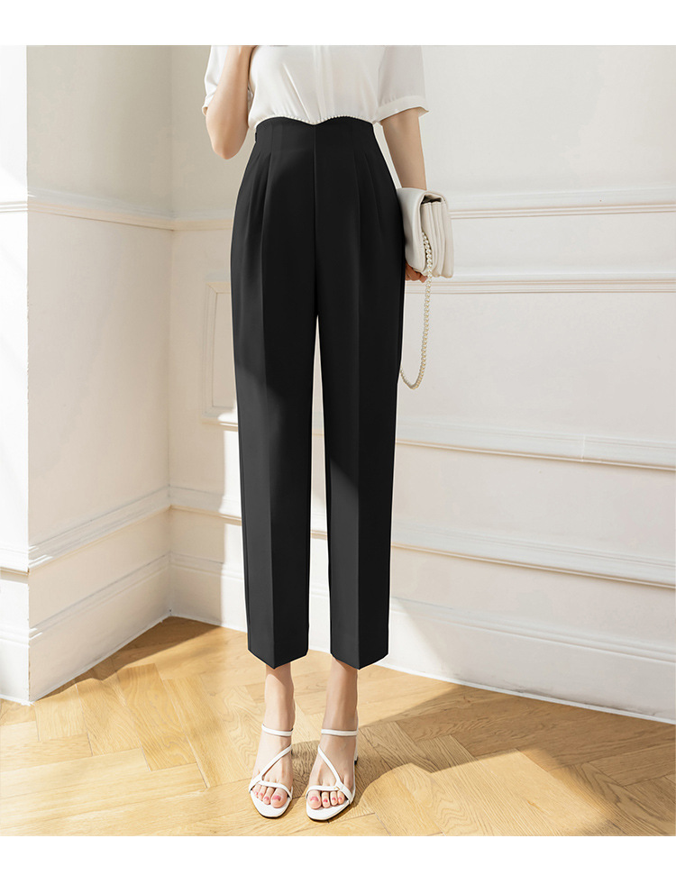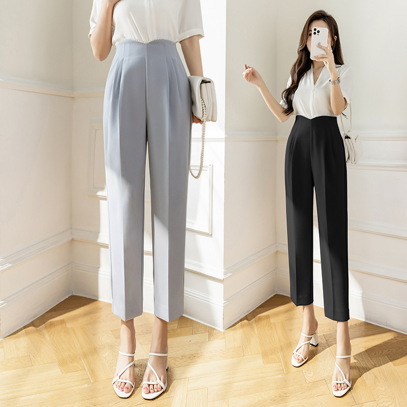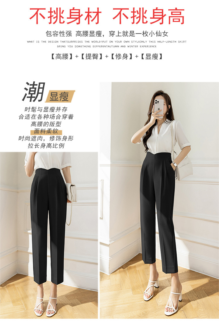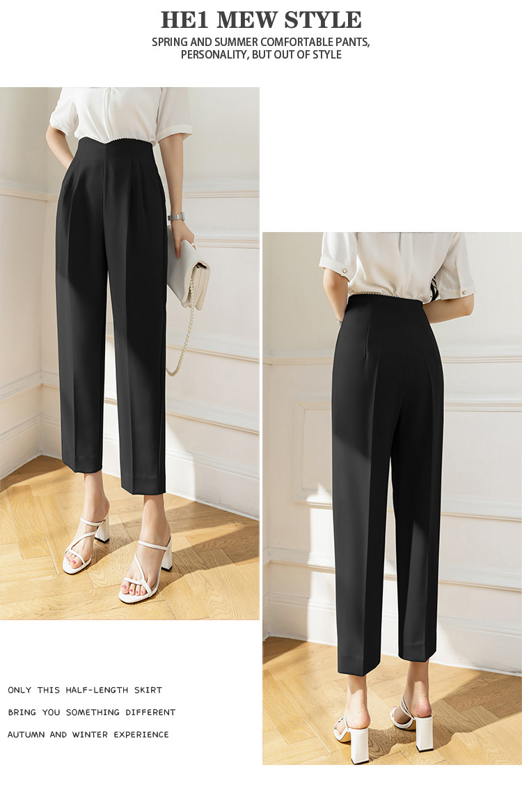 2025년 트렌디한 여성용 블랙 캐주얼 정장 바지, 직장 인터뷰용 하이웨이스트 나인 팬츠, OL 여성용스토어 가기