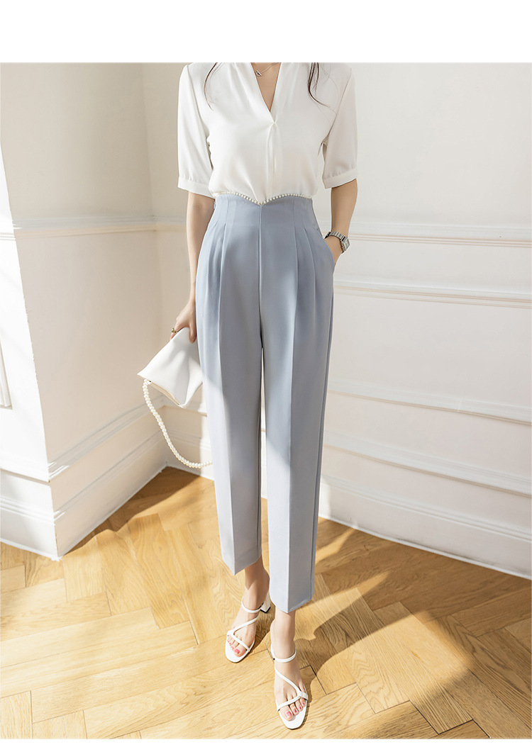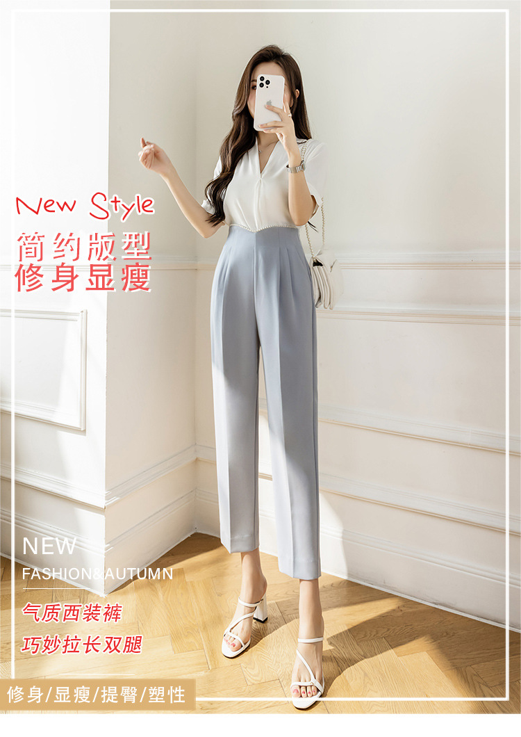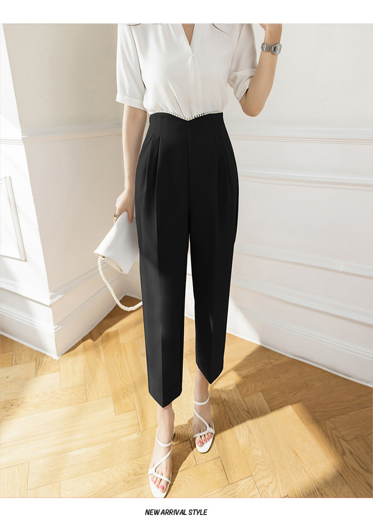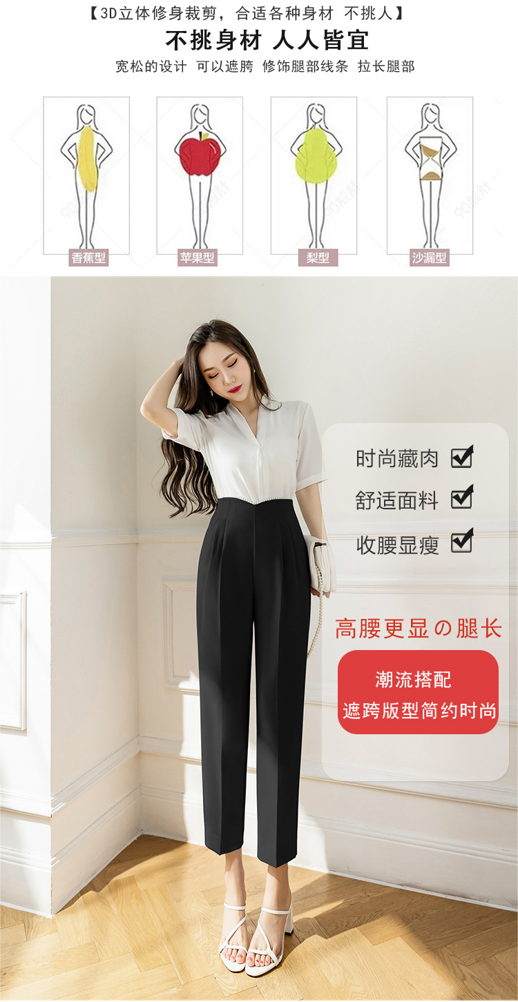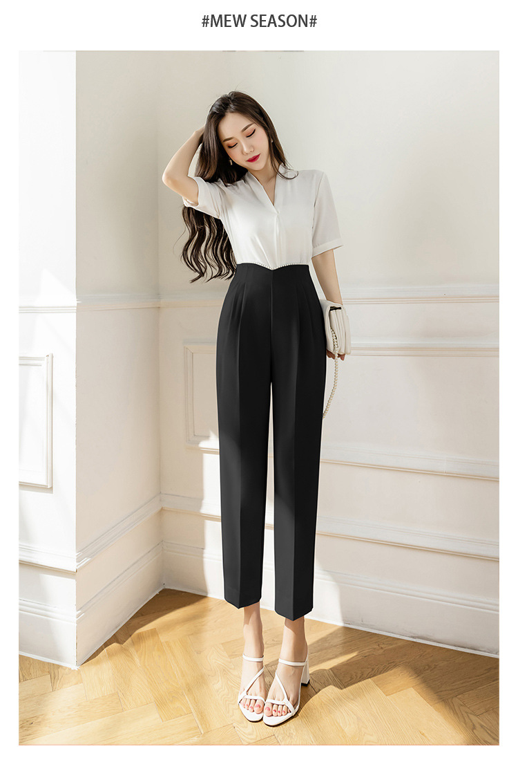 2025년 트렌디한 여성용 블랙 캐주얼 정장 바지, 직장 인터뷰용 하이웨이스트 나인 팬츠, OL 여성용스토어 가기