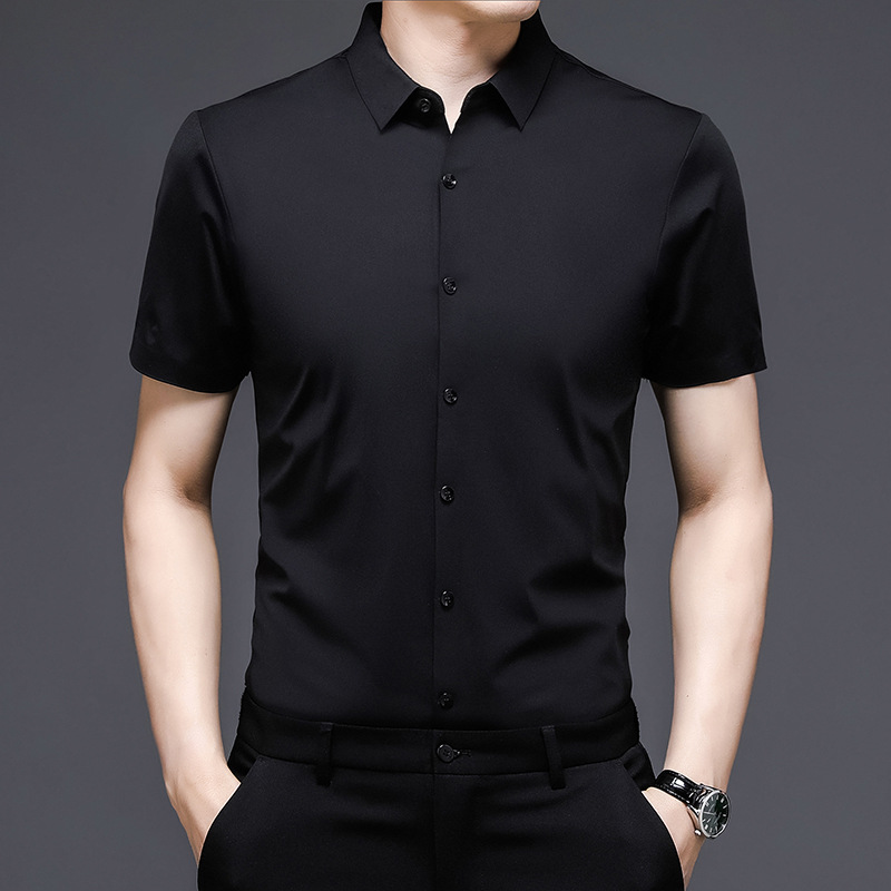 2023 여름 원활한 아이스 실크 반팔 셔츠 남성용 얇은 비 다림질 셔츠 한국 스타일 비즈니스 캐주얼 남성 의류스토어 가기