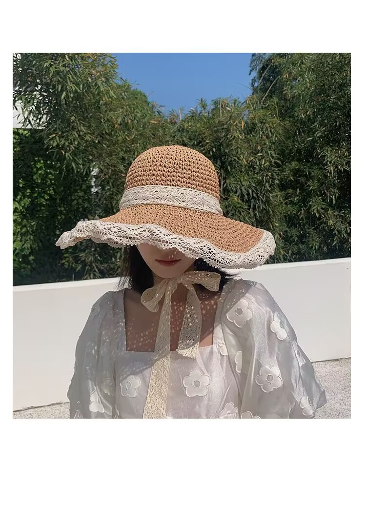 달콤하고 귀여운 푸른 꽃 밀짚 모자 여성용 큰 처마 장식 해변 차양 여름 해변 자외선 차단제 신선한 어부 모자 유행