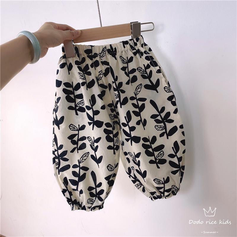 봄 이야기 ~ 소녀의 한국식 플로럴 그린 스타일 순면 통기성 모기 방지 바지 아기 소녀의 느슨한 바지 여름 착용